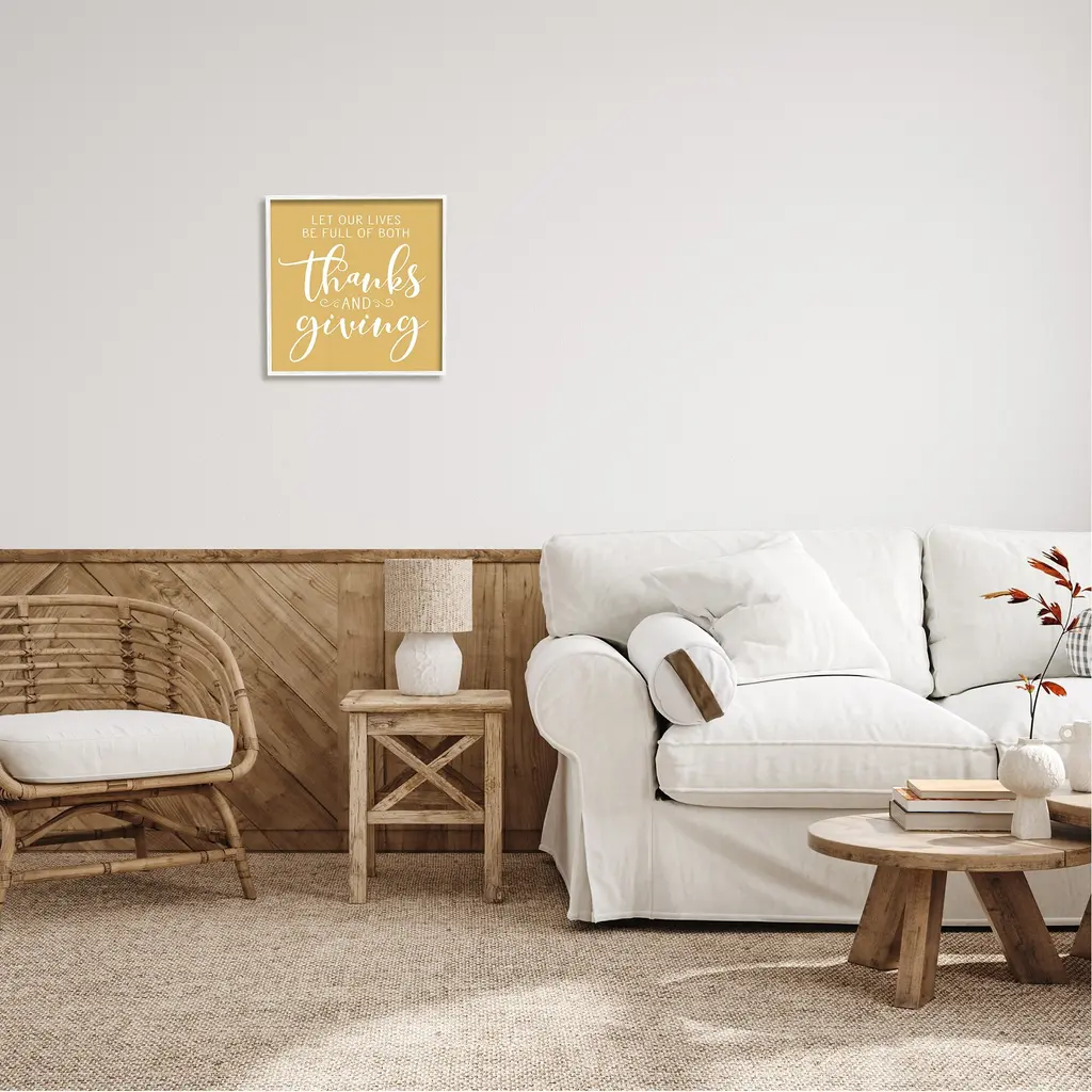 Our Framed Giclee Wall Art adds a touch of class to any space in your home or office. Frames are available in three alluring styles: black, gray farmhouse and white. Our textured artwork will add more depth and dimension to any space. Each piece is mounted with a 1.5 inch thick wood grain frame that is ready to hang! Looking for a statement piece? We have oversized artwork available.Features: Wall Art is Ready to Hang - No Installation or Hardware Needed. For Easy Set Up Lean or Layer Artwork on Shelf or Against Wall.Our giclee prints are carefully mounted on a durable MDF backing, and then perfectly finished in a 1.5 inch thick woodgrain frame. Mounted frame colors include black, gray farmhouse and white. Made In USA.Artwork Relates To: Calligraphy, Typography, Thanksgiving, Seasonal, Fall, AutumnDesign by Lettered and Lined