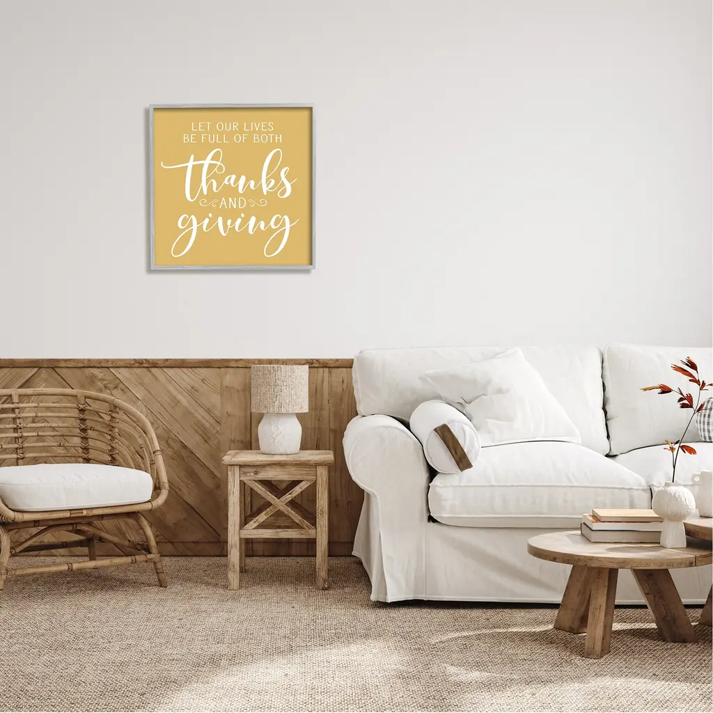 Our Framed Giclee Wall Art adds a touch of class to any space in your home or office. Frames are available in three alluring styles: black, gray farmhouse and white. Our textured artwork will add more depth and dimension to any space. Each piece is mounted with a 1.5 inch thick wood grain frame that is ready to hang! Looking for a statement piece? We have oversized artwork available.Features: Wall Art is Ready to Hang - No Installation or Hardware Needed. For Easy Set Up Lean or Layer Artwork on Shelf or Against Wall.Our giclee prints are carefully mounted on a durable MDF backing, and then perfectly finished in a 1.5 inch thick woodgrain frame. Mounted frame colors include black, gray farmhouse and white. Made In USA.Artwork Relates To: Calligraphy, Typography, Thanksgiving, Seasonal, Fall, AutumnDesign by Lettered and Lined