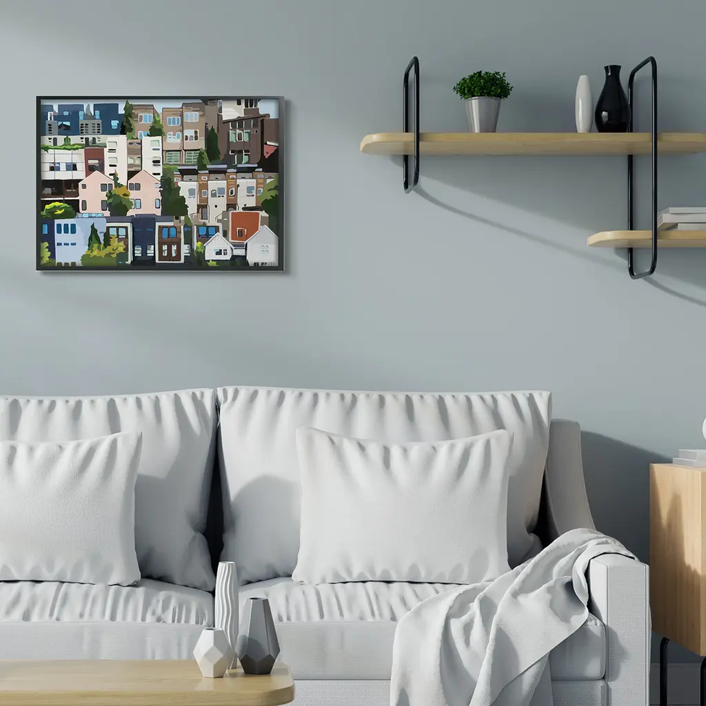 Stupell Urban Apartments Cityscape Colorful Abstract Trees Framed Wall Art - Multi-Color - 16 X 20 - Black