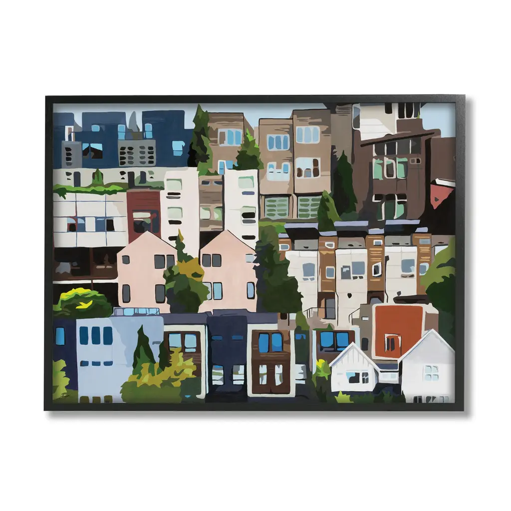 Stupell Urban Apartments Cityscape Colorful Abstract Trees Framed Wall Art - Multi-Color - 16 X 20 - Grey