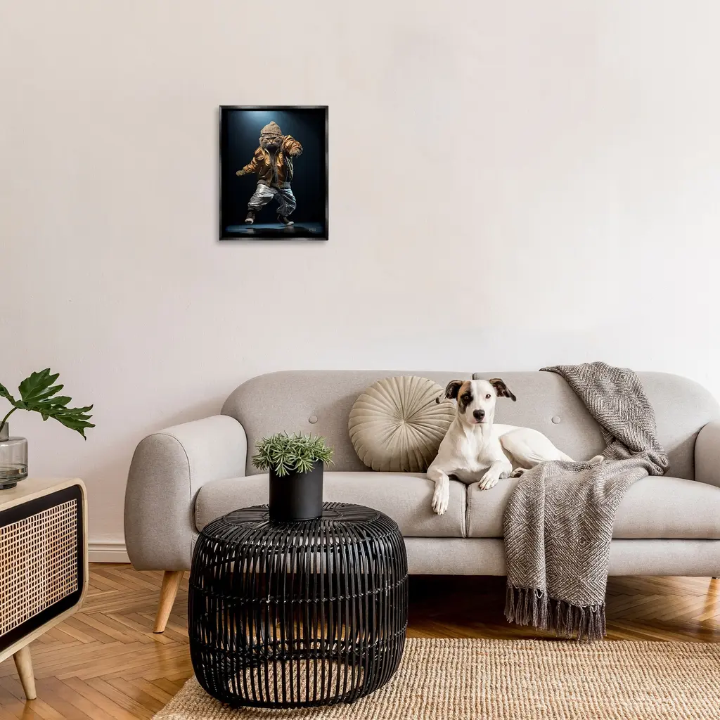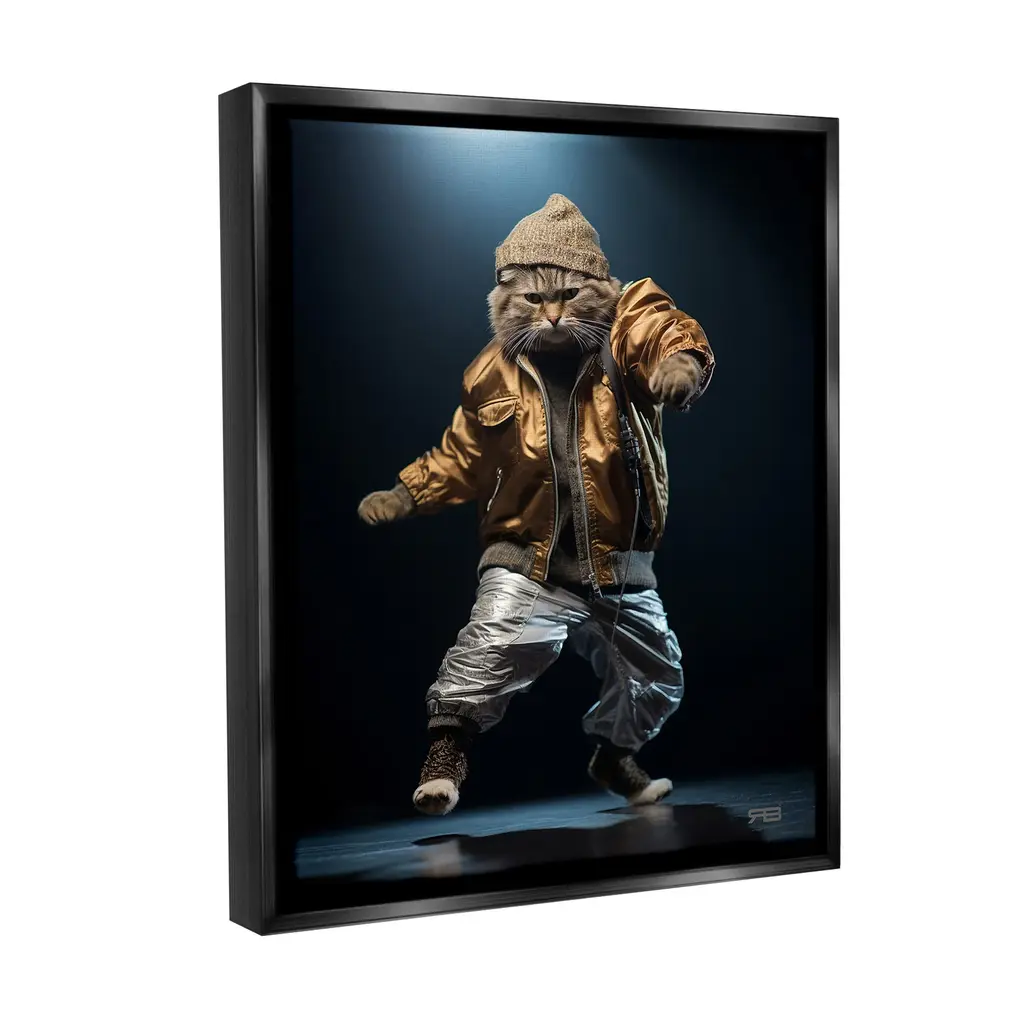 Elevate your home or office to the next level with Stupell Framed Floating Canvas Wall Art. Our premium hand-stretched canvas is mounted securely into a sturdy lightweight frame. The museum-style gap between the wrapped canvas and the box frame gives the illusion of floating artwork. Stupell Wall Art is made in the USA.Features: Dimensions: 17 x 1.7 x 21 Frame, 16 x 1.5 x 20 Canvas ArtFloating Frame Canvas Products are available in sizes 17"x21" and 25"x31". All Floating Frame Canvas Products have a 1.7" Depth.Wall Art is Ready to Hang with Hardware Free Hanging. No Installation required. For Easy Set Up Lean or Layer Artwork on Shelf or Against Wall. Artwork is Permently Fixed into the Frame.Our elevated 1.7" Thick Floating Frame is the perfect complement to our canvas style Wall Art. We use only the highest quality inks in house with industry leading printing solutions. Canvas is hand stretched over a durable wood foundation and then mounted securly into a Modern Box Frame. Made in the USA.Artwork Relates To: Jacket, Performer, Animal, Cat, Mammal, Pet, Dancing, Fashion, UrbanDesign by RB