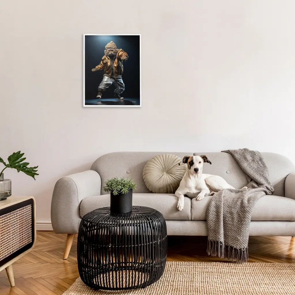 Add dimension to any room with our textured Framed Giclee Artwork. Our framed artwork is securely mounted into a 1.5-inch thick wood grain frame and ready to hang. Frames are available in three alluring styles: black, gray farmhouse and white. In addition, you should check out our oversized options if you want a statement piece. Stupell Wall Art is made in the USA.Features: Dimensions: 11 x 1.5 x 14 FramedFramed Giclee Products are available in the sizes 11"x14", 16"x20" or 24"x30". All Framed Giclee Products have a 1.5" Depth. Wall Art is Ready to Hang with Hardware Free Hanging. No installation required. For Easy Set Up Lean or Layer Artwork on Shelf or Against Wall.Our giclée prints are carefully mounted on a durable MDF backing, and then perfectly finished in a 1.5 inch thick woodgrain frame. Mounted frame colors include black, gray farmhouse and white. Made In USA.Artwork Relates To: Jacket, Performer, Animal, Cat, Mammal, Pet, Dancing, Fashion, UrbanDesign by RB