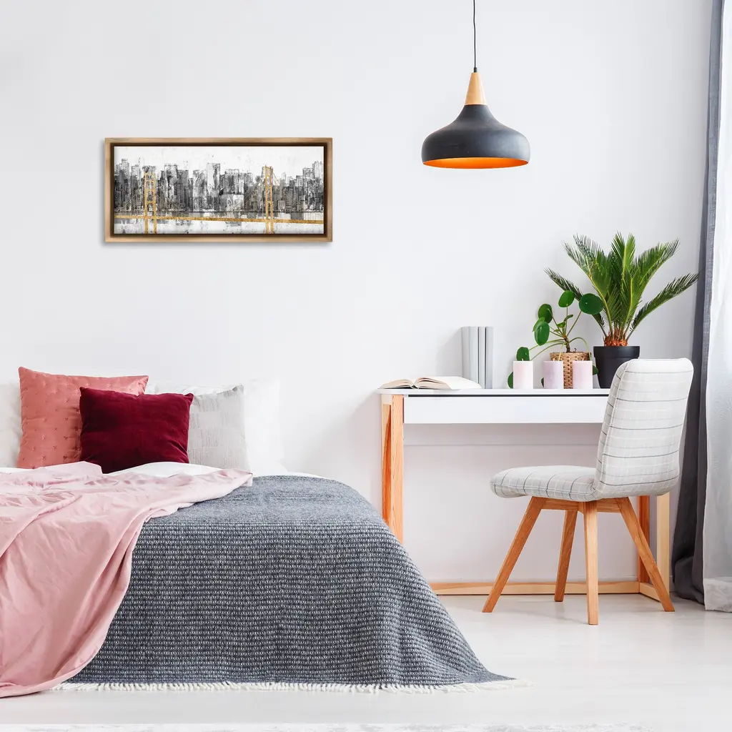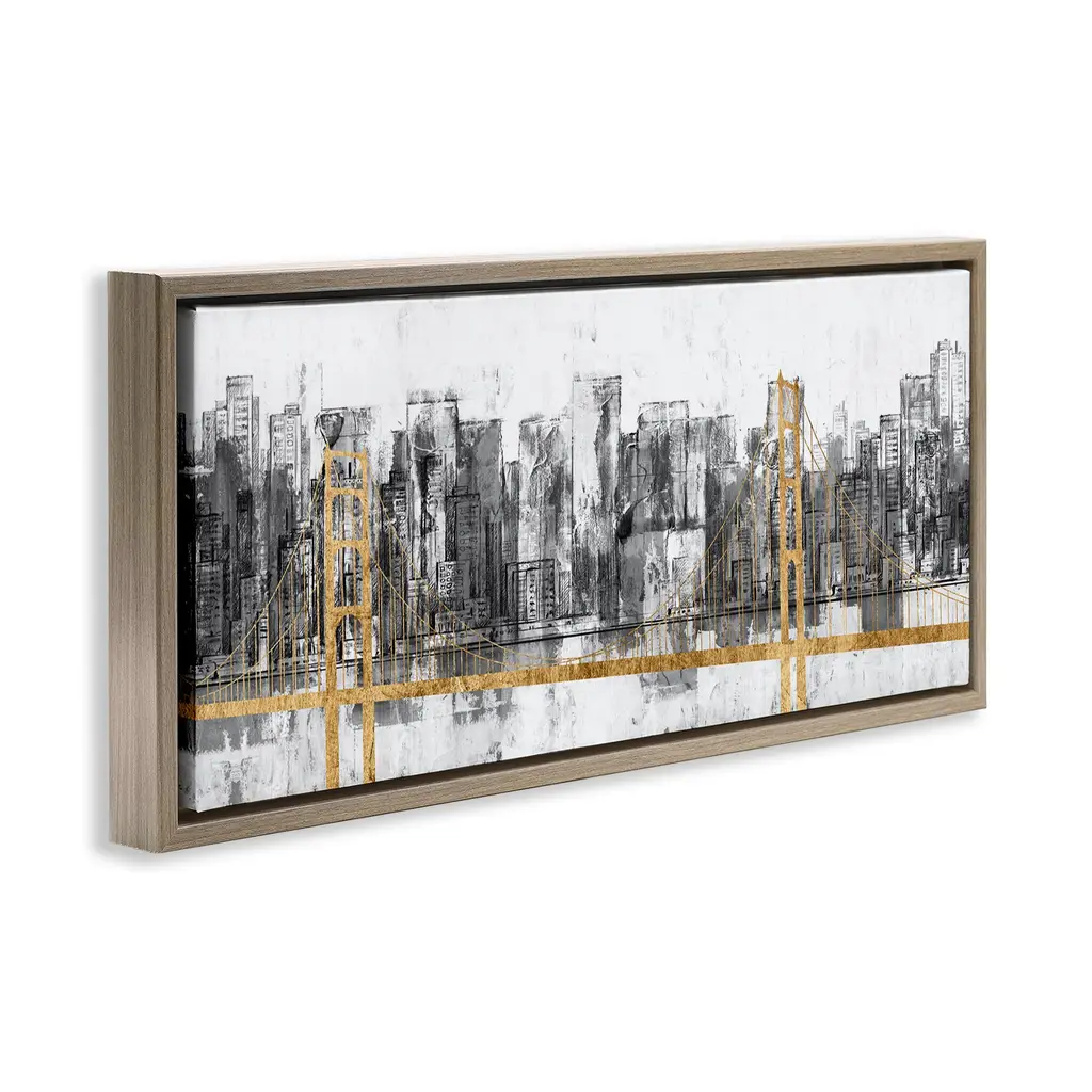 Elevate your home or office to the next level with Stupell Framed Floating Canvas Wall Art. Our premium hand-stretched canvas is mounted securely into a sturdy lightweight frame. The museum-style gap between the wrapped canvas and the box frame gives the illusion of floating artwork. Stupell Wall Art is made in the USA.Features: Dimensions: 25 x 1.7 x 11 Frame, 24 x 1.5 x 10 Canvas ArtFloating Frame Canvas Products are available in sizes 25"x11" and 31"x14". All Floating Frame Canvas Products have a 1.7" Depth.Wall Art is Ready to Hang with Hardware Free Hanging. No Installation required. For Easy Set Up Lean or Layer Artwork on Shelf or Against Wall. Artwork is Permently Fixed into the Frame.Our elevated 1.7" Thick Floating Frame is the perfect complement to our canvas style Wall Art. We use only the highest quality inks in house with industry leading printing solutions. Canvas is hand stretched over a durable wood foundation and then mounted securly into a Modern Box Frame. Made in the USA.Artwork Relates To: City, Urban, Skyline, Industrial, Glam, New York, Abstract, ModernDesign by Jennifer Goldberger