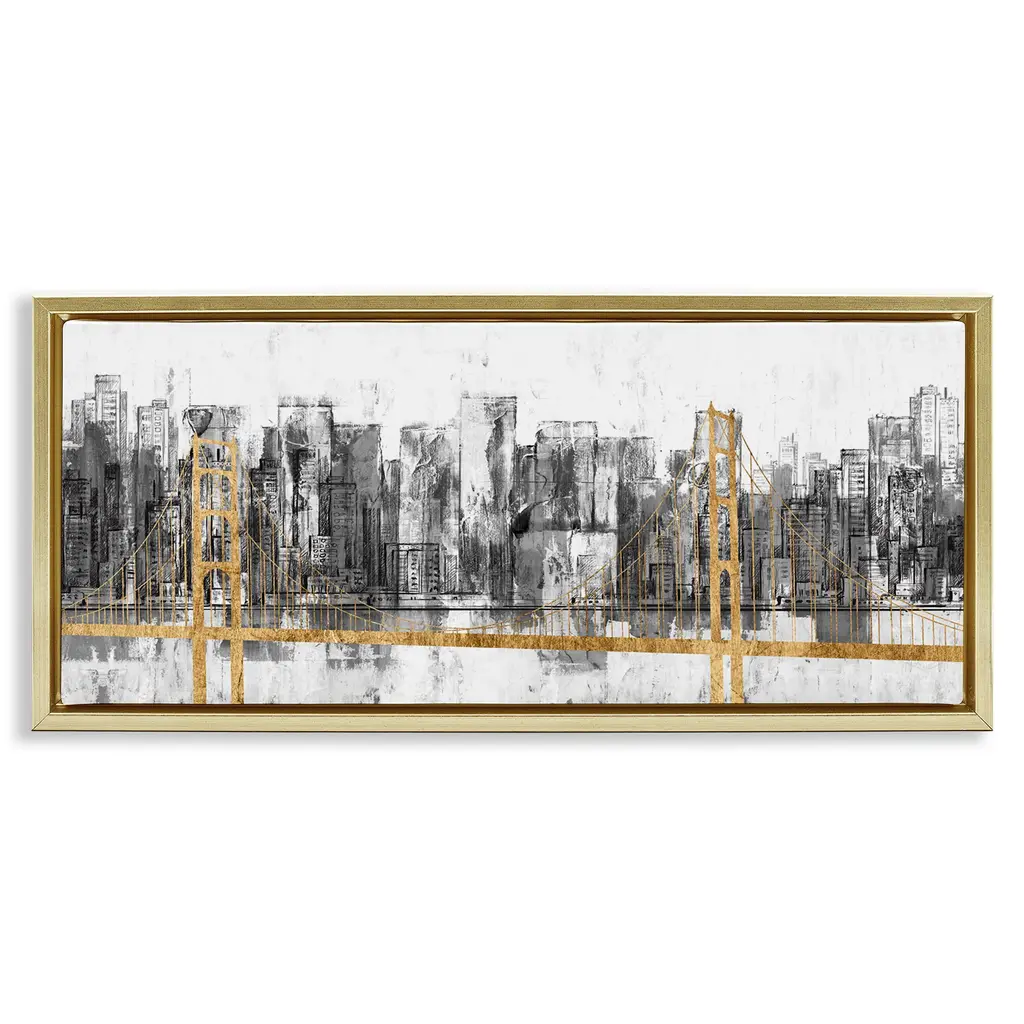 Stupell Urban Golden Bridge Cityscape Framed Giclee Art Design By Jennifer Goldberger - 24 X 10 - White