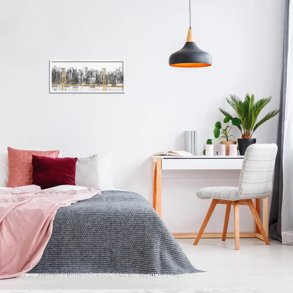 Add dimension to any room with our textured Framed Giclee Artwork. Our framed artwork is securely mounted into a 1.5-inch thick wood grain frame and ready to hang. Frames are available in three alluring styles: black, gray farmhouse and white. In addition, you should check out our oversized options if you want a statement piece. Stupell Wall Art is made in the USA.Features: Dimensions: 24 x 1.5 x 10 FramedFramed Giclee Product Sizes include 24"x10" and 30"x13". All Framed Giclee products have a 1.5" Depth.Wall Art is Ready to Hang with Hardware Free Hanging. No installation required. For Easy Set Up Lean or Layer Artwork on Shelf or Against Wall.Our giclée prints are carefully mounted on a durable MDF backing, and then perfectly finished in a 1.5 inch thick woodgrain frame. Mounted frame colors include black, gray farmhouse and white. Made In USA.Artwork Relates To: City, Urban, Skyline, Industrial, Glam, New York, Abstract, ModernDesign by Jennifer Goldberger
