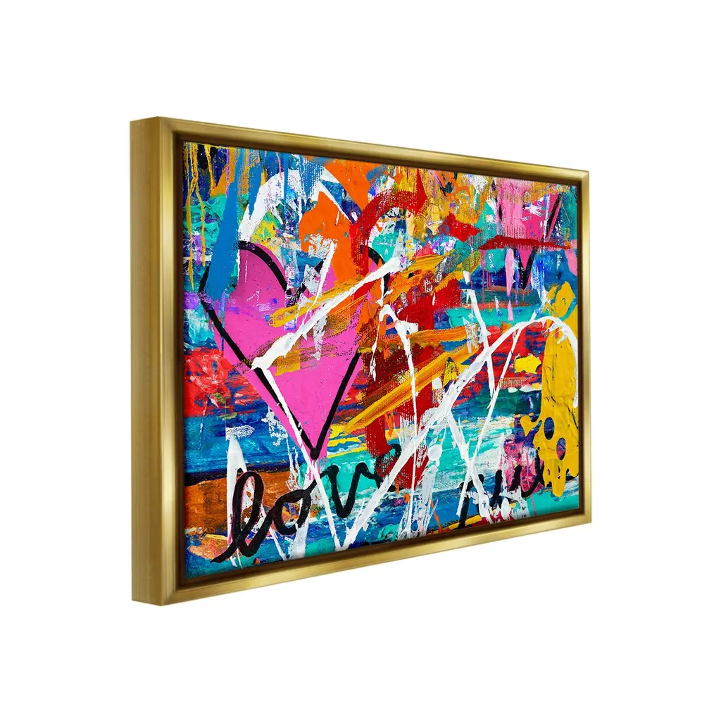 Elevate your home or office to the next level with Stupell Framed Floating Canvas Wall Art. Our premium hand-stretched canvas is mounted securely into a sturdy lightweight frame. The museum-style gap between the wrapped canvas and the box frame gives the illusion of floating artwork. Stupell Wall Art is made in the USA.Features: Dimensions: 21 x 1.7 x 17 Frame, 20 x 1.5 x 16 Canvas ArtFloating Frame Canvas Products are available in sizes 21"x17" and 31"x25". All Floating Frame Canvas Products have a 1.7" Depth.Wall Art is Ready to Hang with Hardware Free Hanging. No Installation required. For Easy Set Up Lean or Layer Artwork on Shelf or Against Wall. Artwork is Permently Fixed into the Frame.Our elevated 1.7" Thick Floating Frame is the perfect complement to our canvas style Wall Art. We use only the highest quality inks in house with industry leading printing solutions. Canvas is hand stretched over a durable wood foundation and then mounted securly into a Modern Box Frame. Made in the USA.Artwork Relates To: Abstract, Modern, Urban, Graffiti, Heart, Symbol, Love, Collage, Bold, VividDesign by Madeline Blake