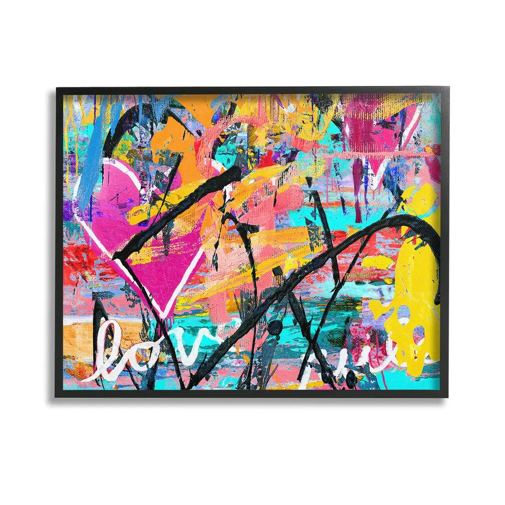 Add dimension to any room with our textured Framed Giclee Artwork. Our framed artwork is securely mounted into a 1.5-inch thick wood grain frame and ready to hang. Frames are available in three alluring styles: black, gray farmhouse and white. In addition, you should check out our oversized options if you want a statement piece. Stupell Wall Art is made in the USA.Features: Dimensions: 14 x 1.5 x 11 FramedFramed Giclee Products are available in the sizes 14"x11", 20"x16" or 30"x24". All Framed Giclee Products have a 1.5" Depth. Wall Art is Ready to Hang with Hardware Free Hanging. No installation required. For Easy Set Up Lean or Layer Artwork on Shelf or Against Wall.Our giclée prints are carefully mounted on a durable MDF backing, and then perfectly finished in a 1.5 inch thick woodgrain frame. Mounted frame colors include black, gray farmhouse and white. Made In USA.Artwork Relates To: Abstract, Modern, Urban, Graffiti, Heart, Symbol, Love, Collage, Bold, VividDesign by Madeline Blake