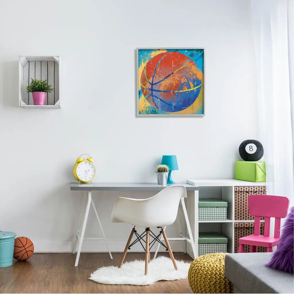 Our Framed Giclee Wall Art adds a touch of class to any space in your home or office. Frames are available in three alluring styles: black, gray farmhouse and white. Our textured artwork will add more depth and dimension to any space. Each piece is mounted with a 1.5 inch thick wood grain frame that is ready to hang! Looking for a statement piece? We have oversized artwork available.Features:Dimensions: 12 x 1.5 x 12 FramedFramed Giclee Sizes IncludeStandard: 12 x 1.5 x 12Large: 17 x 1.5 x 17Oversized: 24 x 1.5 x 24Wall Art is Ready to Hang - No Installation or Hardware Needed. For Easy Set Up Lean or Layer Artwork on Shelf or Against Wall.Our giclee prints are carefully mounted on a durable MDF backing, and then perfectly finished in a 1.5 inch thick woodgrain frame. Mounted frame colors include black, gray farmhouse and white. Made In USA.Artwork Relates To: Sphere; Modern, Sports, Basketball, Sports Ball, Abstract, UrbanDesign by Savannah Miller