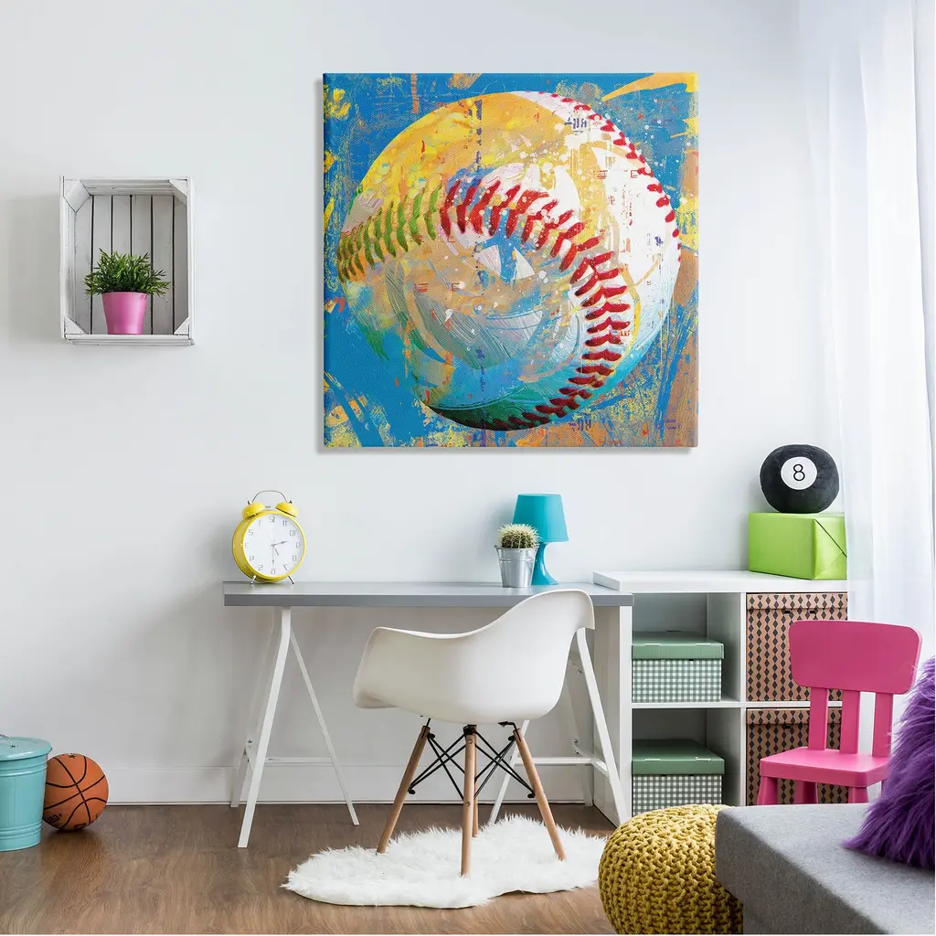 Proudly made in the USA, Our stretched canvas is created with the highest standards. We use only the highest quality inks and canvas on our in house Mimaki printers, and then hand cut and stretch each piece over a 1.5 inch thick wooden frame for hanging. The art comes ready to hang with no installation required. Not to mention, at this size, it is sure to be the focal point of any room!Features:Dimensions: 17 x 1.5 x 17 InchesStretched Canvas Sizes IncludeStandard: 17 x 1.5 x 17Large: 24 x 1.5 x 24X-Large: 30 x 1.5 x 30Oversized: 36 x 1.5 x 36Wall Art is Ready to Hang - No Installation or Hardware Needed. For Easy Set Up Lean or Layer Artwork on Shelf or Against Wall.Our stretched canvas is created with the highest standards. We use only the highest quality inks and canvas on our in house Mimaki printers, and then hand cut and stretch each piece over a 1.5 inch thick wooden frame for hanging. Made In USA.Artwork Relates To: Sphere; Modern, Sports, Baseball, Sports Ball, Abstract, UrbanDesign by Savannah Miller