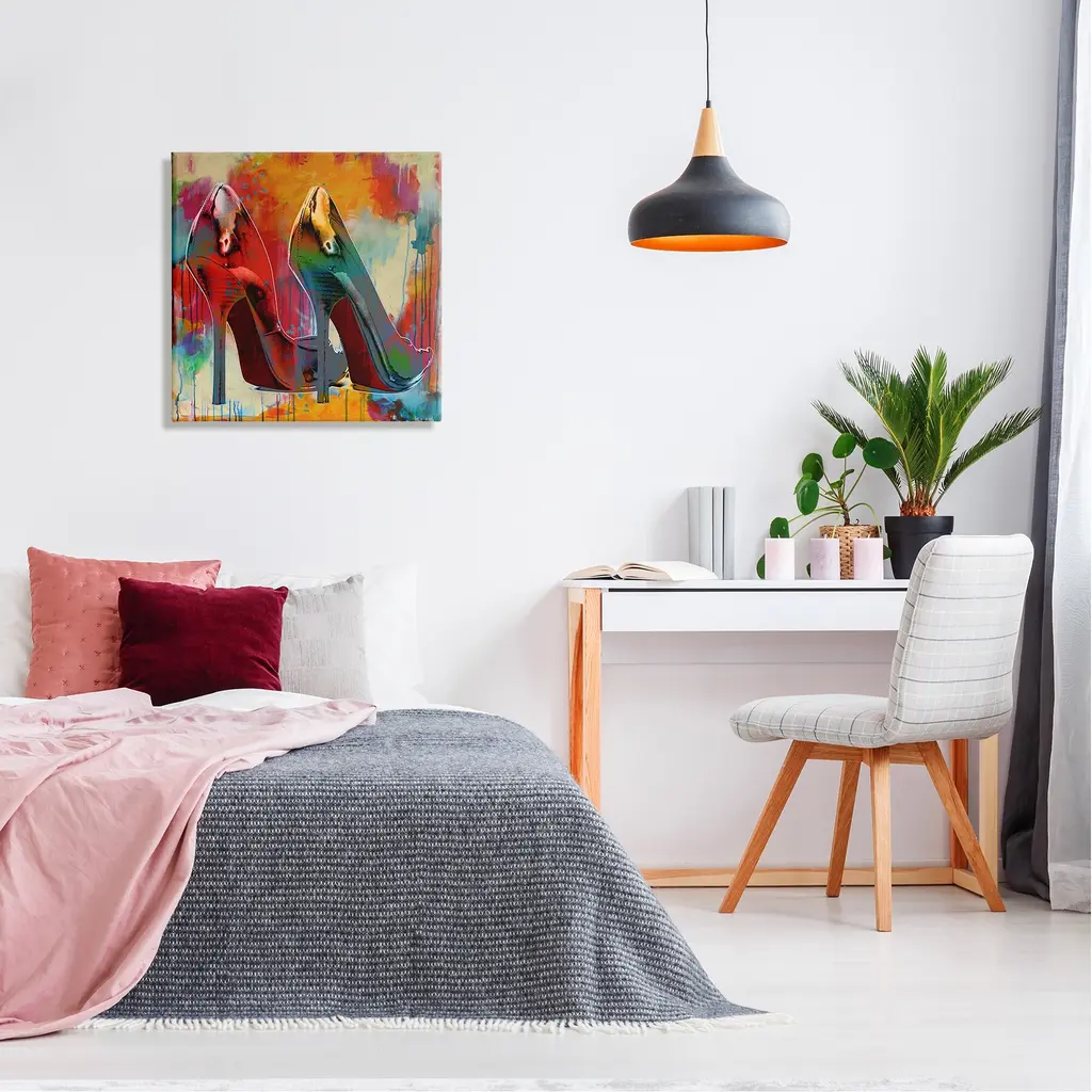 Proudly made in the USA, Our stretched canvas is created with the highest standards. We use only the highest quality inks and canvas on our in house Mimaki printers, and then hand cut and stretch each piece over a 1.5 inch thick wooden frame for hanging. The art comes ready to hang with no installation required. Room Type: Living Room, Den, Hallway, Office, Entryway, Study, Dining Room or Bedroom, Guest Room, Studio, Dorm or BoudoirFeatures: Dimensions: 17 x 1.5 x 17 InchesStretched Canvas Sizes Include Standard: 17 x 1.5 x 17 Large: 24 x 1.5 x 24 X-Large: 30 x 1.5 x 30 Oversized: 36 x 1.5 x 36Wall Art is Ready to Hang - No Installation or Hardware Needed. For Easy Set Up Lean or Layer Artwork on Shelf or Against Wall.Our stretched canvas is created with the highest standards. We use only the highest quality inks and canvas on our in house Mimaki printers, and then hand cut and stretch each piece over a 1.5 inch thick wooden frame for hanging. Made In USA.Artwork Relates To: Modern, High Heels, Urban, Glam, FashionDesign by Sarah McGuire