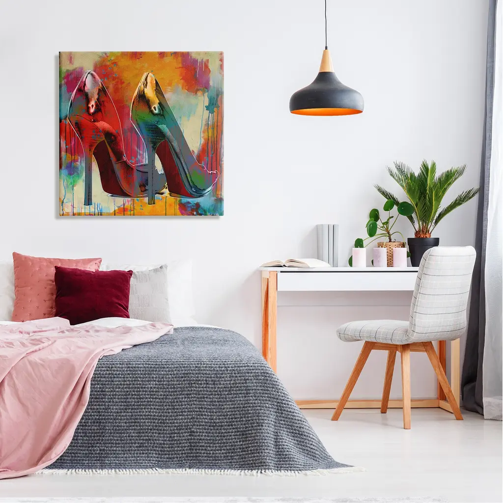 Proudly made in the USA, Our stretched canvas is created with the highest standards. We use only the highest quality inks and canvas on our in house Mimaki printers, and then hand cut and stretch each piece over a 1.5 inch thick wooden frame for hanging. The art comes ready to hang with no installation required. Room Type: Living Room, Den, Hallway, Office, Entryway, Study, Dining Room or Bedroom, Guest Room, Studio, Dorm or BoudoirFeatures: Dimensions: 17 x 1.5 x 17 InchesStretched Canvas Sizes Include Standard: 17 x 1.5 x 17 Large: 24 x 1.5 x 24 X-Large: 30 x 1.5 x 30 Oversized: 36 x 1.5 x 36Wall Art is Ready to Hang - No Installation or Hardware Needed. For Easy Set Up Lean or Layer Artwork on Shelf or Against Wall.Our stretched canvas is created with the highest standards. We use only the highest quality inks and canvas on our in house Mimaki printers, and then hand cut and stretch each piece over a 1.5 inch thick wooden frame for hanging. Made In USA.Artwork Relates To: Modern, High Heels, Urban, Glam, FashionDesign by Sarah McGuire
