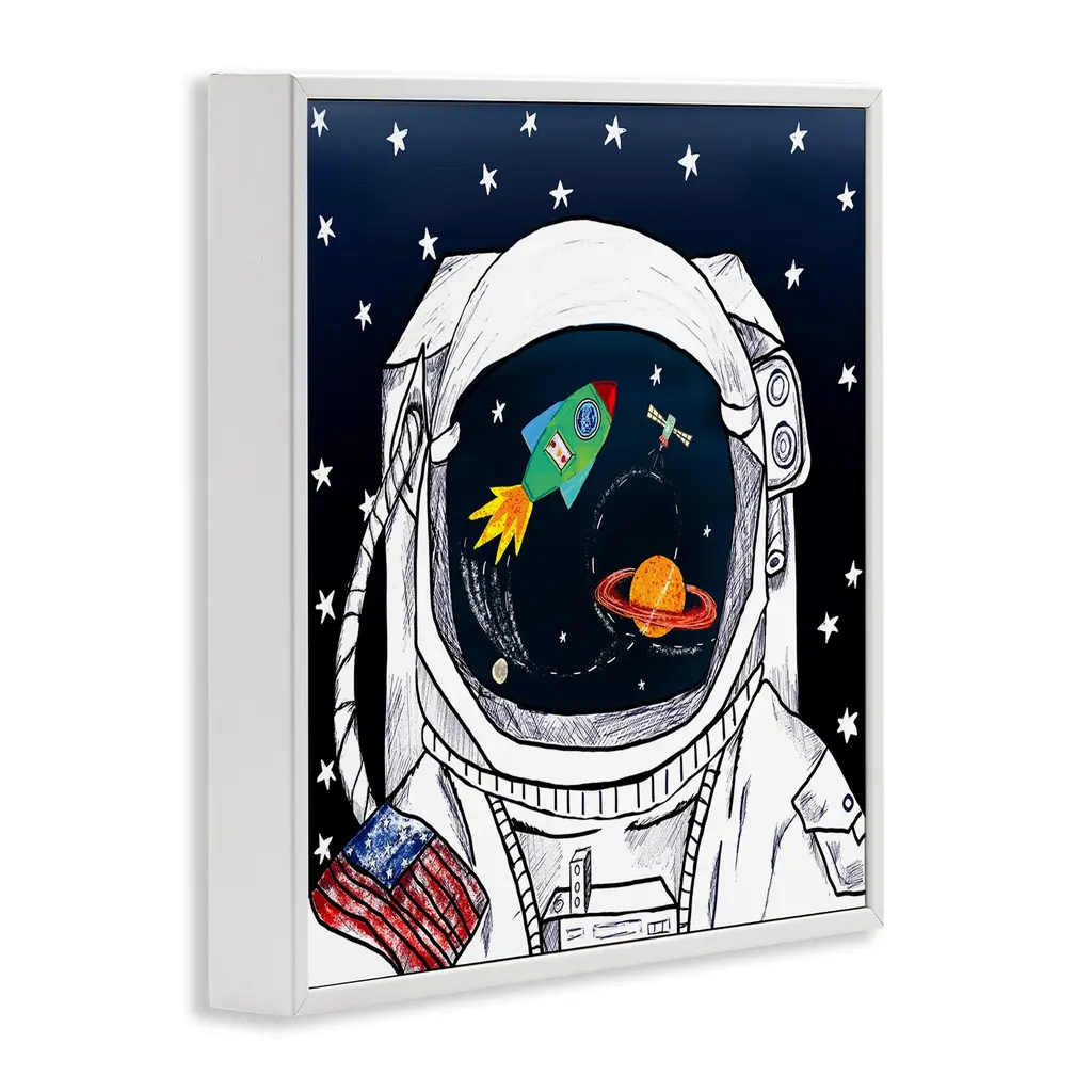 Stupell Us Astronaut Suit Space Galaxy Reflection Framed Wall Art, 12x12 - Blue - 12 X 12 - Wood - White
