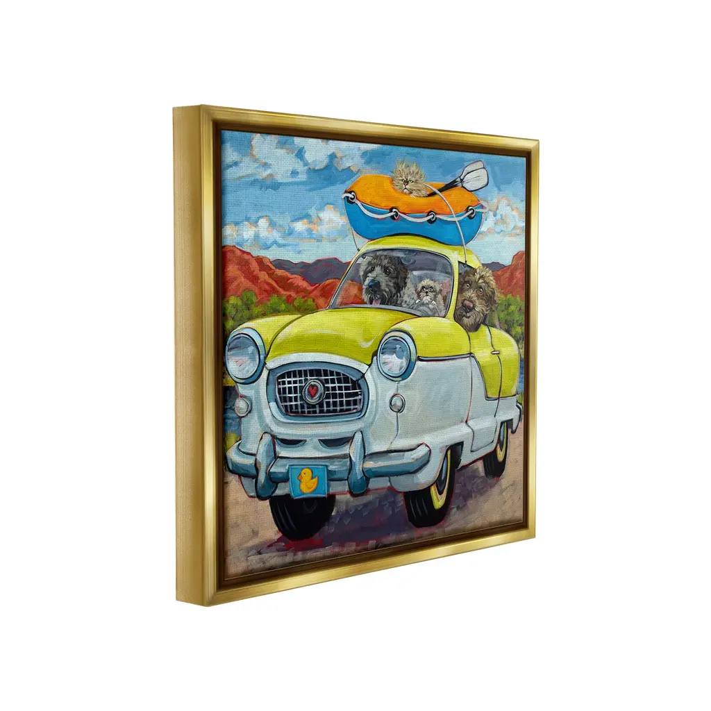 Elevate your home or office to the next level with Stupell Framed Floating Canvas Wall Art. Our premium hand-stretched canvas is mounted securely into a sturdy lightweight frame. The museum-style gap between the wrapped canvas and the box frame gives the illusion of floating artwork. Stupell Wall Art is made in the USA.Features: Dimensions: 18 x 1.7 x 18 Frame, 17 x 1.5 x 17 Canvas ArtFloating Frame Canvas Products are available in sizes 18"x18" and 25"x25". All Floating Frame Canvas Products have a 1.7" Depth.Wall Art is Ready to Hang with Hardware Free Hanging. No Installation required. For Easy Set Up Lean or Layer Artwork on Shelf or Against Wall. Artwork is Permently Fixed into the Frame.Our elevated 1.7" Thick Floating Frame is the perfect complement to our canvas style Wall Art. We use only the highest quality inks in house with industry leading printing solutions. Canvas is hand stretched over a durable wood foundation and then mounted securly into a Modern Box Frame. Made in the USA.Artwork Relates To: Painting, Animal, Canine, Dog, Mammal, Pet, Car, Modern, Landscape, Raft, Boat, Vacation, Desert, SummerDesign by CR Townsend