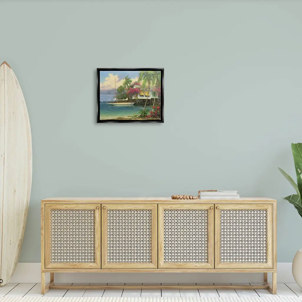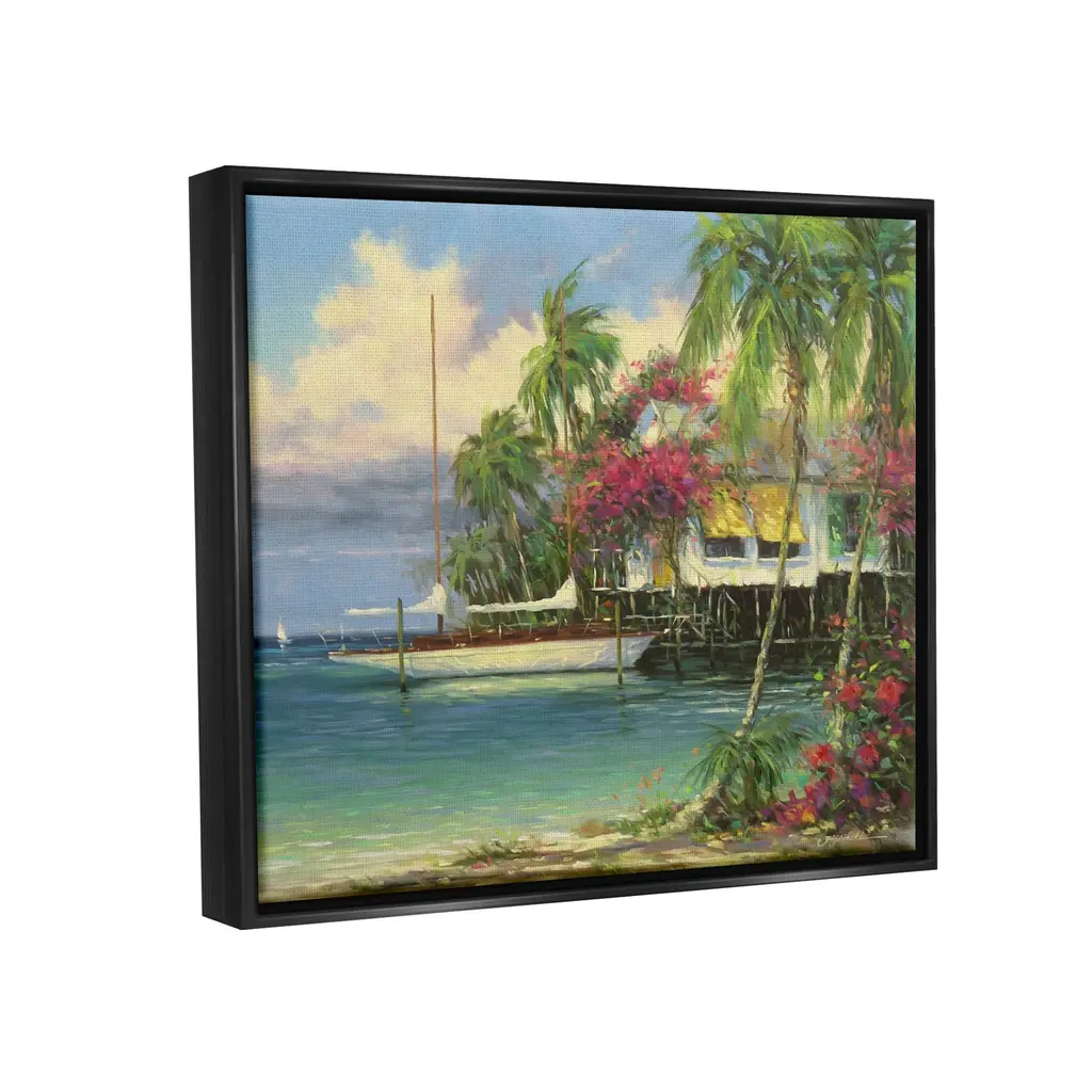 Elevate your home or office to the next level with Stupell Framed Floating Canvas Wall Art. Our premium hand stretched canvas is mounted securly into a sturdy lightweight frame. The museum style gap between wrapped canvas and box frame gives the illusion of floating artwork. Features: Dimensions: 21 x 1.7 x 17 Frame, 20 x 1.5 x 16 Canvas ArtFloating Frame Sizes Include Standard: 21 x 1.7 x 17 Oversized: 31 x 1.7 x 25Wall Art is Ready to Hang - No Installation or Hardware Needed. For Easy Set Up Lean or Layer Artwork on Shelf or Against Wall.Our elevated 1.7" Thick Floating Frame is the perfect complement to our canvas style Wall Art. We use only the highest quality inks in house with industry leading printing solutions. Canvas is hand stretched over a durable wood foundation and then mounted securly into a Modern Box Frame. Made in the USA.Artwork Relates To: Waterfront, Water, Tropical, Sea, Shoreline, Boat, Summer, Scenery, Coast, Beach, Plant, Pier, Villa, ResortDesign by Martin Figlinski