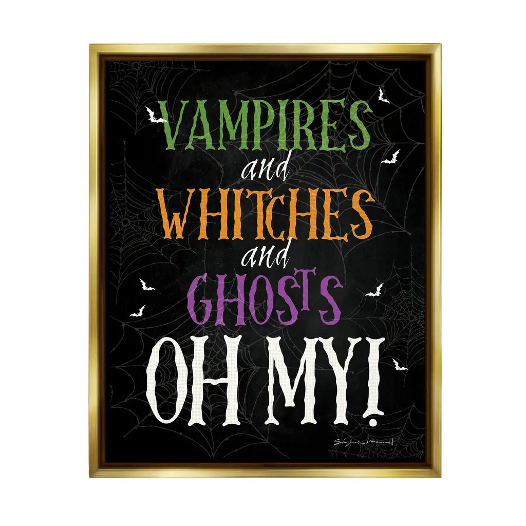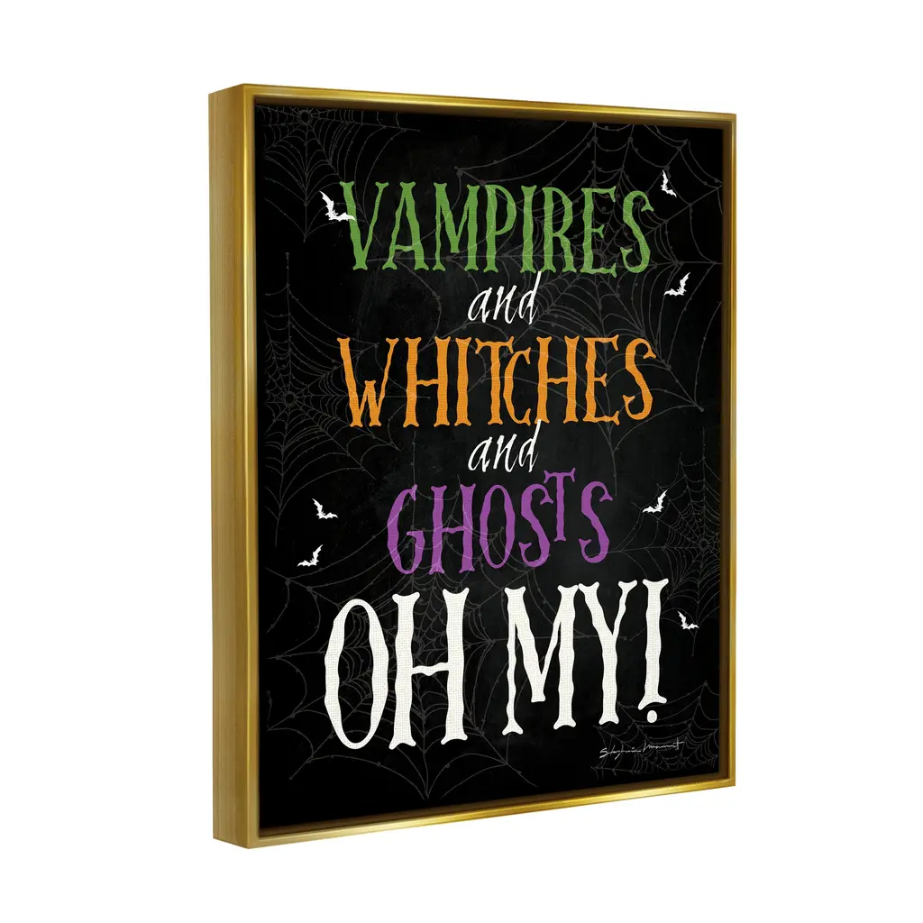Stupell Vampires Witches Ghosts Phrase Framed Floater Canvas Wall Art By Stephanie Workman Marrott - 16 X 20 - Gold
