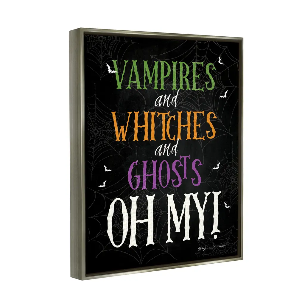 Stupell Vampires Witches Ghosts Phrase Framed Floater Canvas Wall Art By Stephanie Workman Marrott - 16 X 20 - Grey