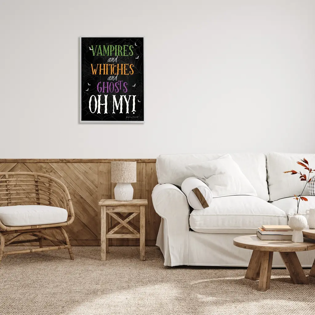 Add dimension to any room with our textured Framed Giclee Artwork. Our framed artwork is securely mounted into a 1.5-inch thick wood grain frame and ready to hang. Frames are available in three alluring styles: black, gray farmhouse and white. In addition, you should check out our oversized options if you want a statement piece. Stupell Wall Art is made in the USA.Features: Dimensions: 11 x 1.5 x 14 FramedFramed Giclee Sizes Include Standard: 11 x 1.5 x 14 Large: 16 x 1.5 x 20 Oversized: 24 x 1.5 x 30Wall Art is Ready to Hang - No Installation or Hardware Needed. For Easy Set Up Lean or Layer Artwork on Shelf or Against Wall.Our giclée prints are carefully mounted on a durable MDF backing, and then perfectly finished in a 1.5 inch thick woodgrain frame. Mounted frame colors include black, gray farmhouse and white. Made In USA.Artwork Relates To: Halloween, Witch, Phrase, Sign, Bats, Vampires Witches Ghosts Oh MyDesign by Stephanie Workman Marrott