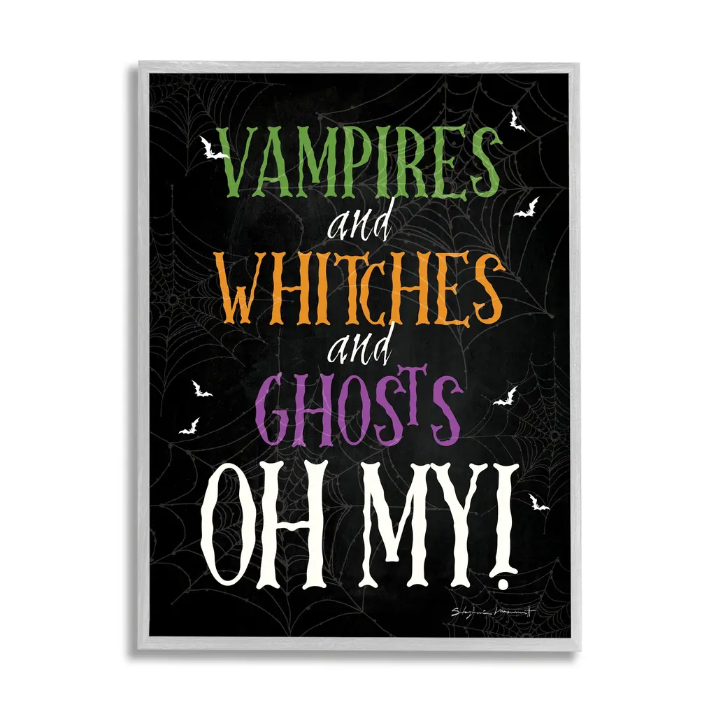 Add dimension to any room with our textured Framed Giclee Artwork. Our framed artwork is securely mounted into a 1.5-inch thick wood grain frame and ready to hang. Frames are available in three alluring styles: black, gray farmhouse and white. In addition, you should check out our oversized options if you want a statement piece. Stupell Wall Art is made in the USA.Features: Dimensions: 11 x 1.5 x 14 FramedFramed Giclee Sizes Include Standard: 11 x 1.5 x 14 Large: 16 x 1.5 x 20 Oversized: 24 x 1.5 x 30Wall Art is Ready to Hang - No Installation or Hardware Needed. For Easy Set Up Lean or Layer Artwork on Shelf or Against Wall.Our giclée prints are carefully mounted on a durable MDF backing, and then perfectly finished in a 1.5 inch thick woodgrain frame. Mounted frame colors include black, gray farmhouse and white. Made In USA.Artwork Relates To: Halloween, Witch, Phrase, Sign, Bats, Vampires Witches Ghosts Oh MyDesign by Stephanie Workman Marrott