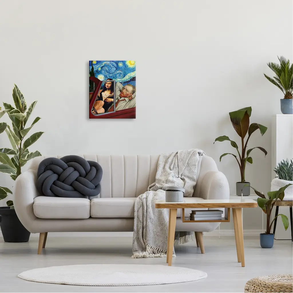 Stupell Van Gogh & Mona Lisa Driving Starry Night Sky Canvas Wall Art - Blue - 24 X 30