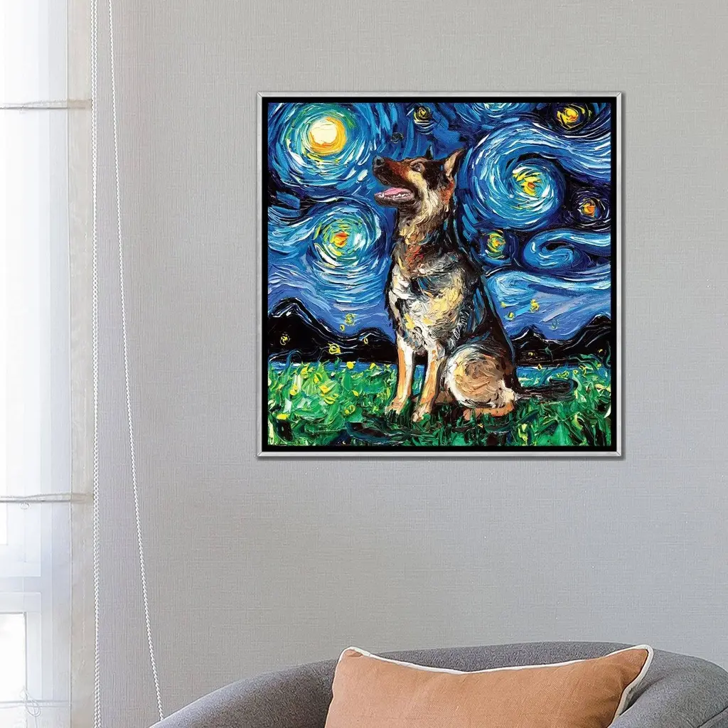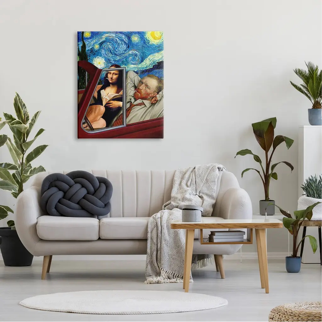 Stupell Van Gogh & Mona Lisa Driving Starry Night Sky Canvas Wall Art - Blue - 30 X 40