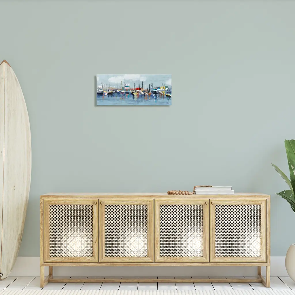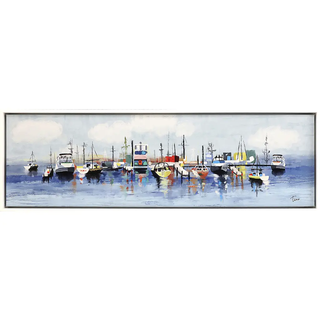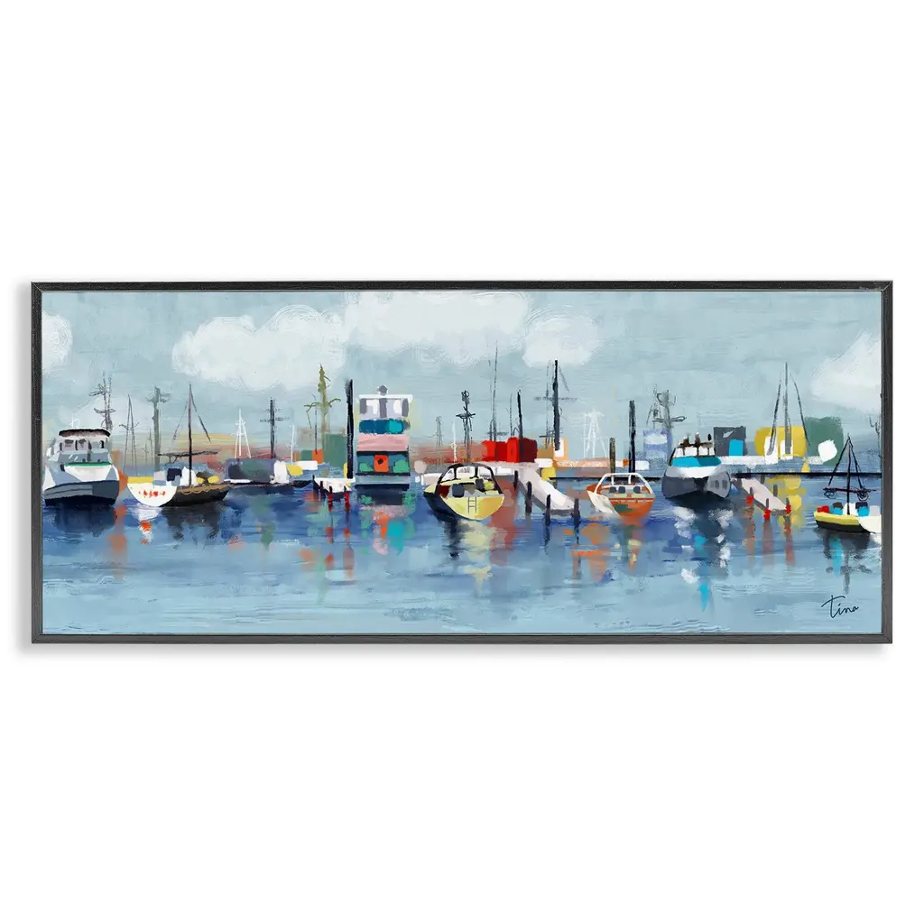 Proudly made in the USA, Our stretched canvas is created with the highest standards. We use only the highest quality inks and canvas on our in house Mimaki printers, and then hand cut and stretch each piece over a 1.5 inch thick wooden frame for hanging. The art comes ready to hang with no installation required. Not to mention, at this size, it is sure to be the focal point of any room!Features: Wall Art is Ready to Hang - No Installation or Hardware Needed. For Easy Set Up Lean or Layer Artwork on Shelf or Against Wall.Our stretched canvas is created with the highest standards. We use only the highest quality inks and canvas on our in house Mimaki printers, and then hand cut and stretch each piece over a 1.5 inch thick wooden frame for hanging. Made In USA.Artwork Relates To: Water; Boat; Waterfront; Sea; Ocean; Pier; Port; Dock; Watercraft; VesselDesign by Tina Finn