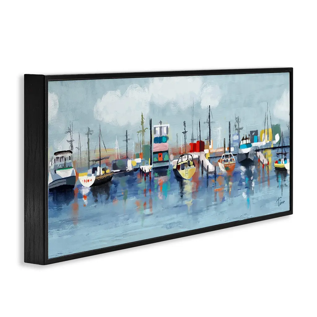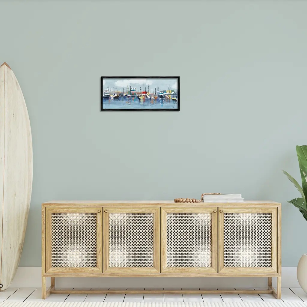 Our Framed Giclee Wall Art adds a touch of class to any space in your home or office. Frames are available in three alluring styles: black, gray farmhouse and white. Our textured artwork will add more depth and dimension to any space. Each piece is mounted with a 1.5 inch thick wood grain frame that is ready to hang! Looking for a statement piece? We have oversized artwork available.Features: Wall Art is Ready to Hang - No Installation or Hardware Needed. For Easy Set Up Lean or Layer Artwork on Shelf or Against Wall.Our giclee prints are carefully mounted on a durable MDF backing, and then perfectly finished in a 1.5 inch thick woodgrain frame. Mounted frame colors include black, gray farmhouse and white. Made In USA.Artwork Relates To: Water; Boat; Waterfront; Sea; Ocean; Pier; Port; Dock; Watercraft; VesselDesign by Tina Finn