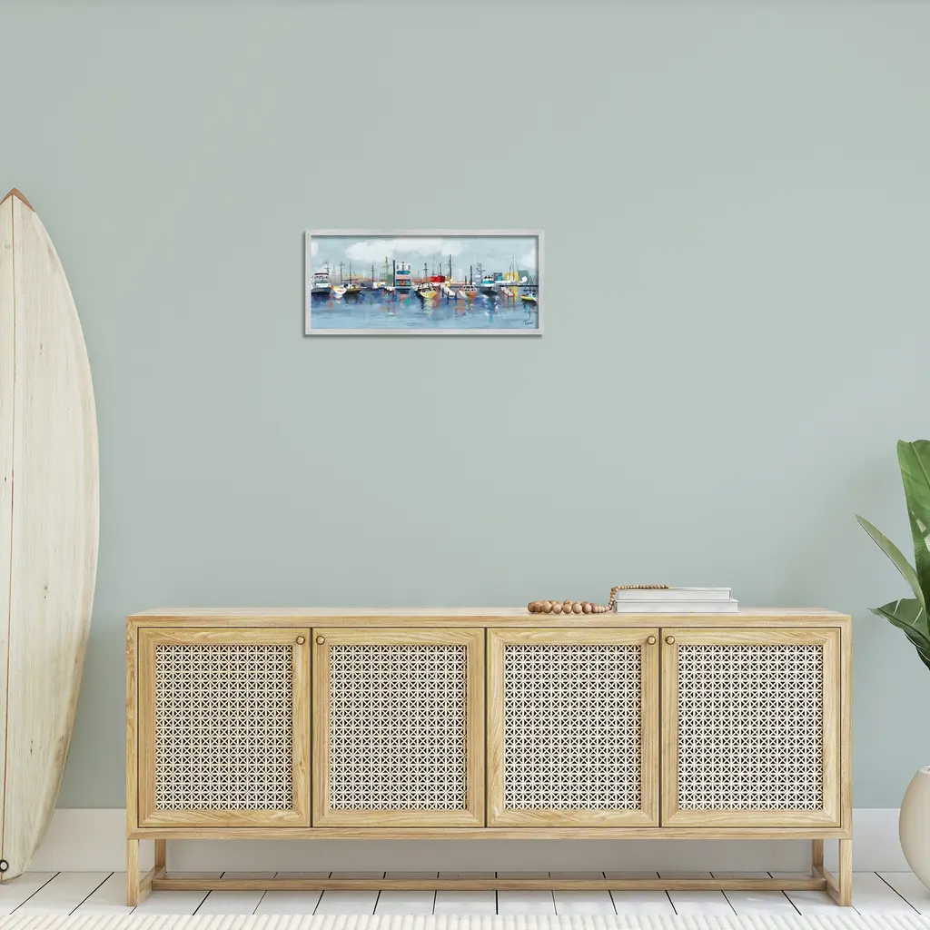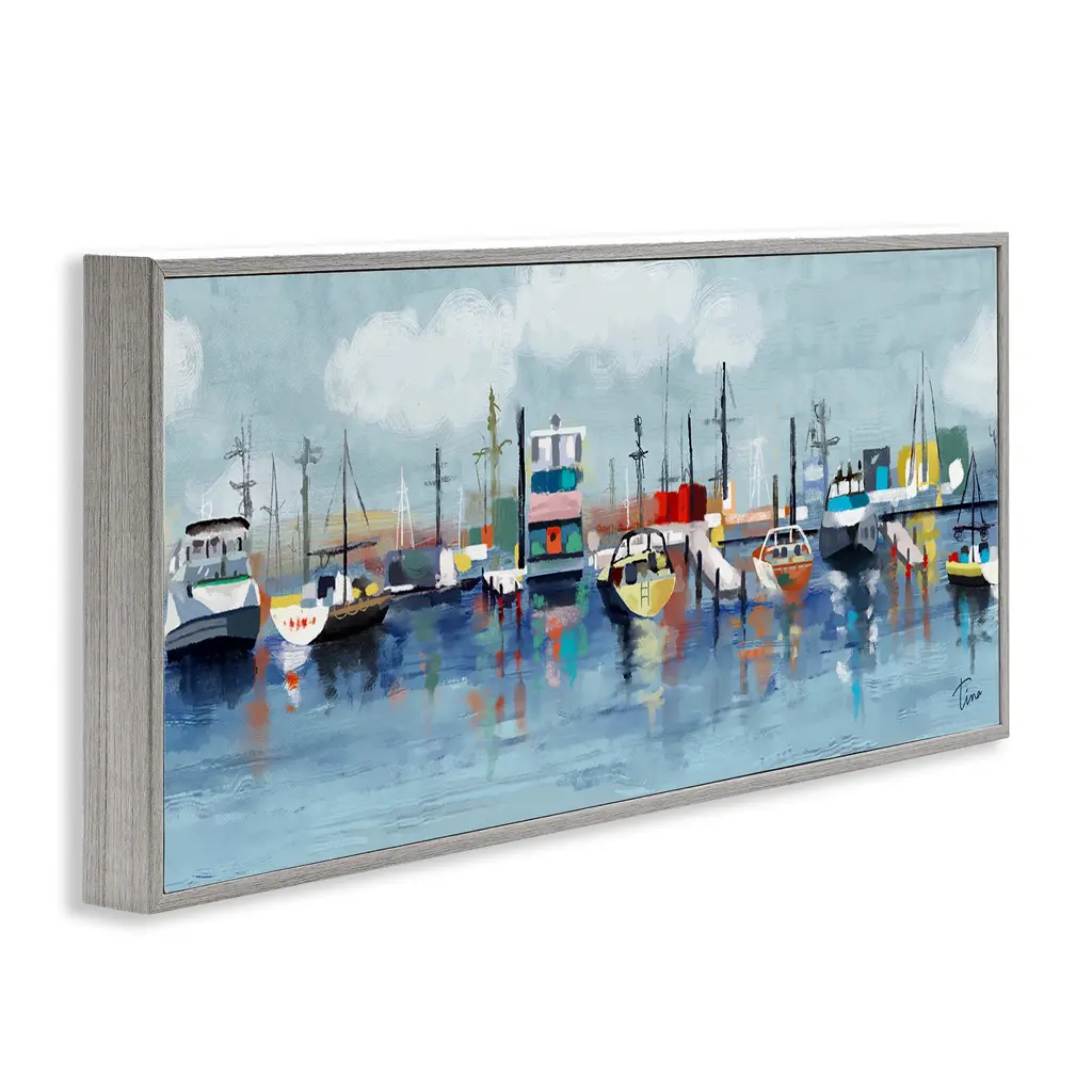 Our Framed Giclee Wall Art adds a touch of class to any space in your home or office. Frames are available in three alluring styles: black, gray farmhouse and white. Our textured artwork will add more depth and dimension to any space. Each piece is mounted with a 1.5 inch thick wood grain frame that is ready to hang! Looking for a statement piece? We have oversized artwork available.Features: Wall Art is Ready to Hang - No Installation or Hardware Needed. For Easy Set Up Lean or Layer Artwork on Shelf or Against Wall.Our giclee prints are carefully mounted on a durable MDF backing, and then perfectly finished in a 1.5 inch thick woodgrain frame. Mounted frame colors include black, gray farmhouse and white. Made In USA.Artwork Relates To: Water; Boat; Waterfront; Sea; Ocean; Pier; Port; Dock; Watercraft; VesselDesign by Tina Finn