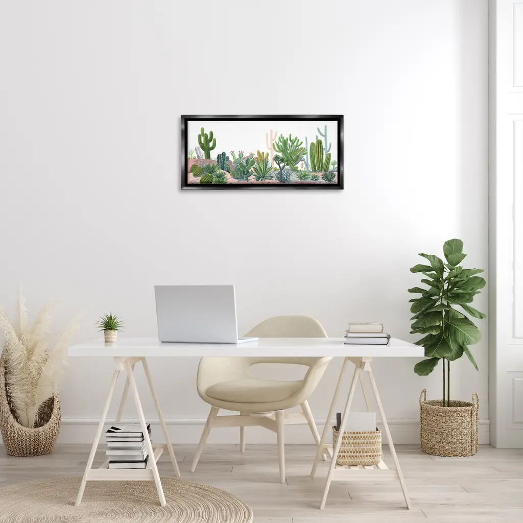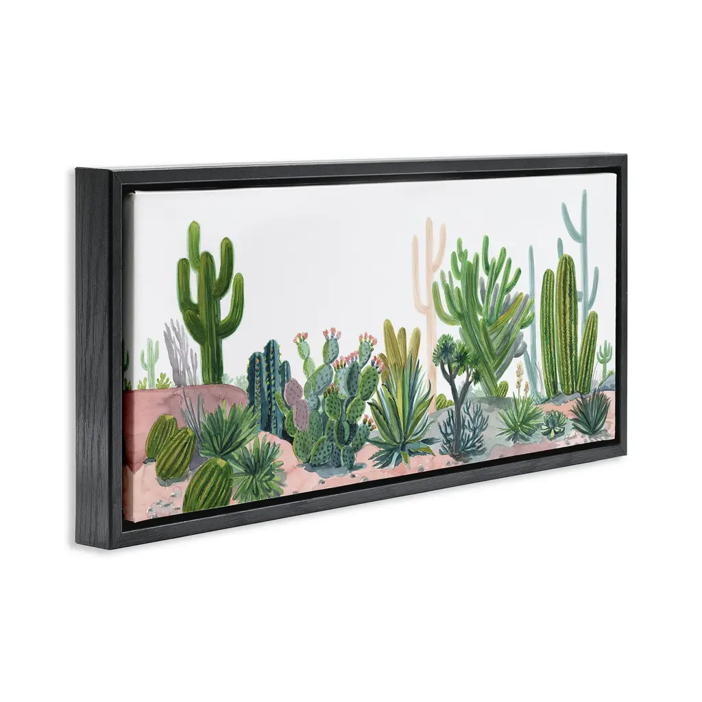 Elevate your home or office to the next level with Stupell Framed Floating Canvas Wall Art. Our premium hand-stretched canvas is mounted securely into a sturdy lightweight frame. The museum-style gap between the wrapped canvas and the box frame gives the illusion of floating artwork. Stupell Wall Art is made in the USA.Features: Dimensions: 25 x 1.7 x 11 Frame, 24 x 1.5 x 10 Canvas ArtFloating Frame Canvas Products are available in sizes 25"x11" and 31"x14". All Floating Frame Canvas Products have a 1.7" Depth.Wall Art is Ready to Hang with Hardware Free Hanging. No Installation required. For Easy Set Up Lean or Layer Artwork on Shelf or Against Wall. Artwork is Permently Fixed into the Frame.Our elevated 1.7" Thick Floating Frame is the perfect complement to our canvas style Wall Art. We use only the highest quality inks in house with industry leading printing solutions. Canvas is hand stretched over a durable wood foundation and then mounted securly into a Modern Box Frame. Made in the USA.Artwork Relates To: Cactus, Plant, Vegetation, Arid Vegetation, Desert, Botanical, Prickly PearDesign by Cherish Flieder