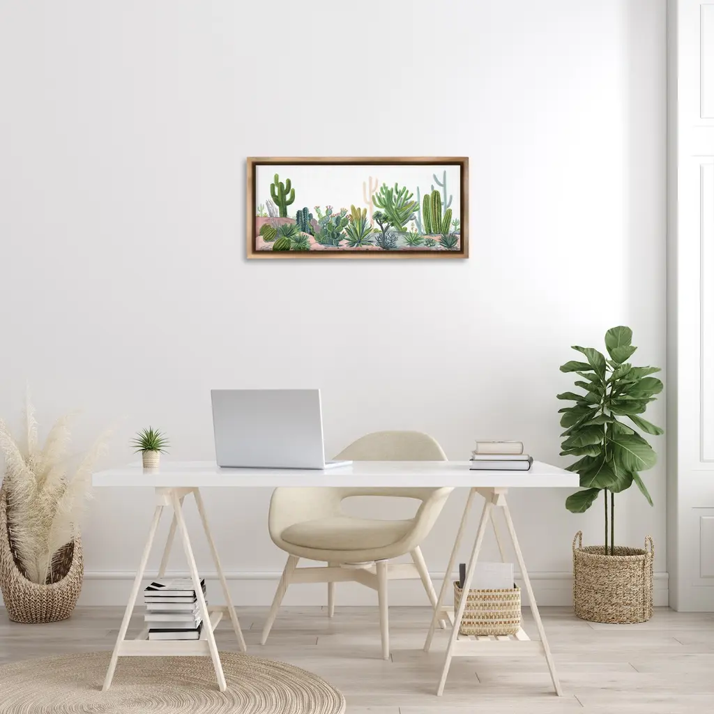Elevate your home or office to the next level with Stupell Framed Floating Canvas Wall Art. Our premium hand-stretched canvas is mounted securely into a sturdy lightweight frame. The museum-style gap between the wrapped canvas and the box frame gives the illusion of floating artwork. Stupell Wall Art is made in the USA.Features: Dimensions: 25 x 1.7 x 11 Frame, 24 x 1.5 x 10 Canvas ArtFloating Frame Canvas Products are available in sizes 25"x11" and 31"x14". All Floating Frame Canvas Products have a 1.7" Depth.Wall Art is Ready to Hang with Hardware Free Hanging. No Installation required. For Easy Set Up Lean or Layer Artwork on Shelf or Against Wall. Artwork is Permently Fixed into the Frame.Our elevated 1.7" Thick Floating Frame is the perfect complement to our canvas style Wall Art. We use only the highest quality inks in house with industry leading printing solutions. Canvas is hand stretched over a durable wood foundation and then mounted securly into a Modern Box Frame. Made in the USA.Artwork Relates To: Cactus, Plant, Vegetation, Arid Vegetation, Desert, Botanical, Prickly PearDesign by Cherish Flieder