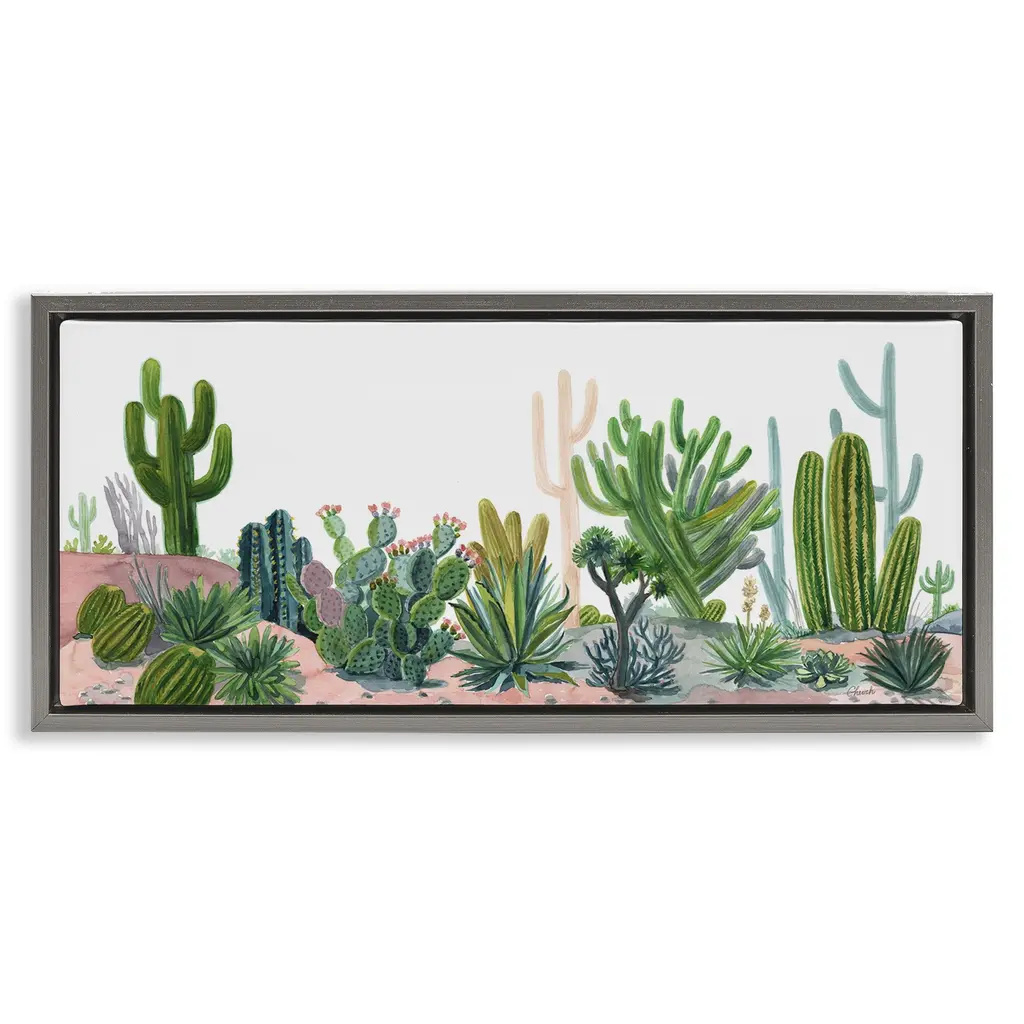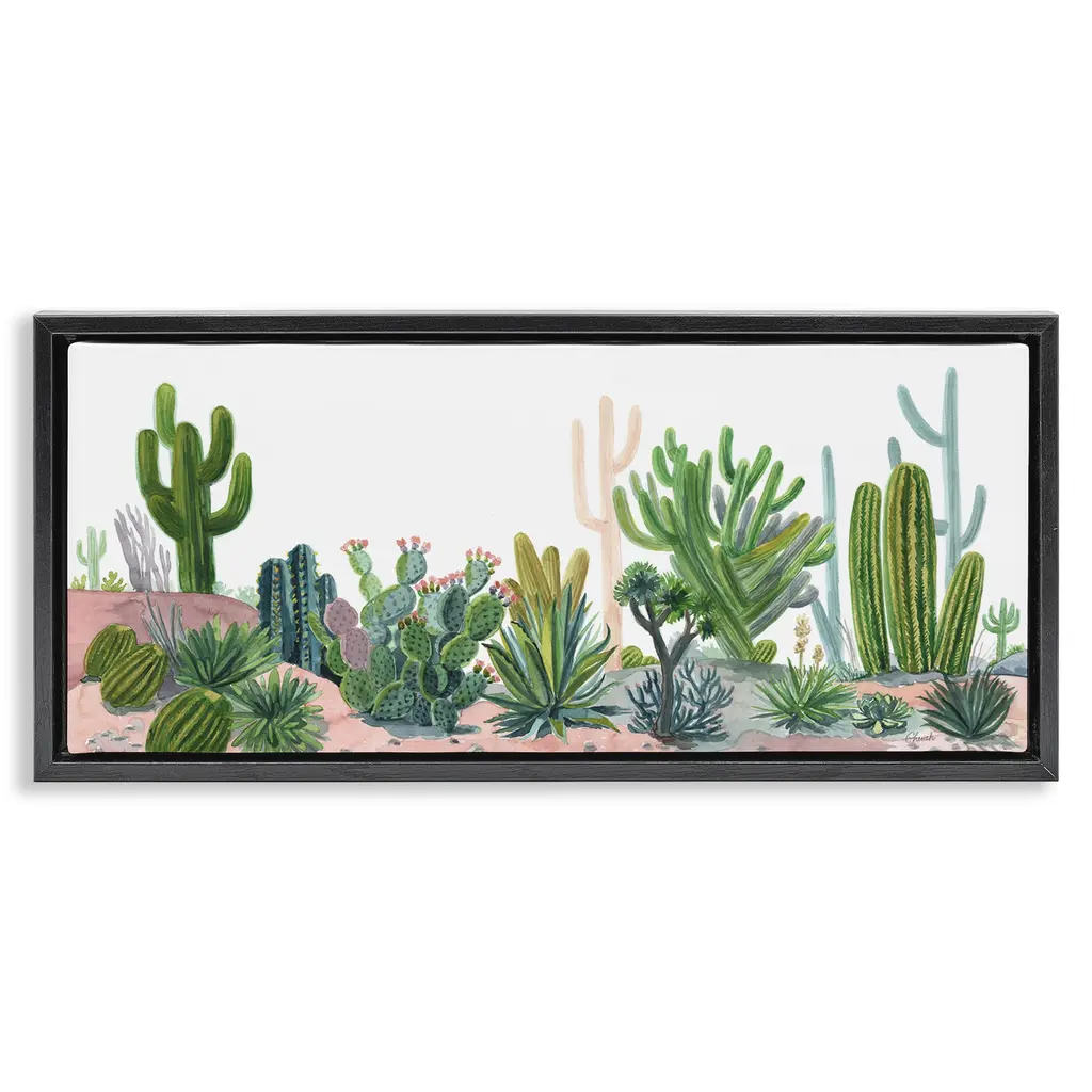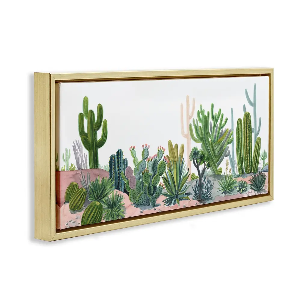 Elevate your home or office to the next level with Stupell Framed Floating Canvas Wall Art. Our premium hand-stretched canvas is mounted securely into a sturdy lightweight frame. The museum-style gap between the wrapped canvas and the box frame gives the illusion of floating artwork. Stupell Wall Art is made in the USA.Features: Dimensions: 25 x 1.7 x 11 Frame, 24 x 1.5 x 10 Canvas ArtFloating Frame Canvas Products are available in sizes 25"x11" and 31"x14". All Floating Frame Canvas Products have a 1.7" Depth.Wall Art is Ready to Hang with Hardware Free Hanging. No Installation required. For Easy Set Up Lean or Layer Artwork on Shelf or Against Wall. Artwork is Permently Fixed into the Frame.Our elevated 1.7" Thick Floating Frame is the perfect complement to our canvas style Wall Art. We use only the highest quality inks in house with industry leading printing solutions. Canvas is hand stretched over a durable wood foundation and then mounted securly into a Modern Box Frame. Made in the USA.Artwork Relates To: Cactus, Plant, Vegetation, Arid Vegetation, Desert, Botanical, Prickly PearDesign by Cherish Flieder