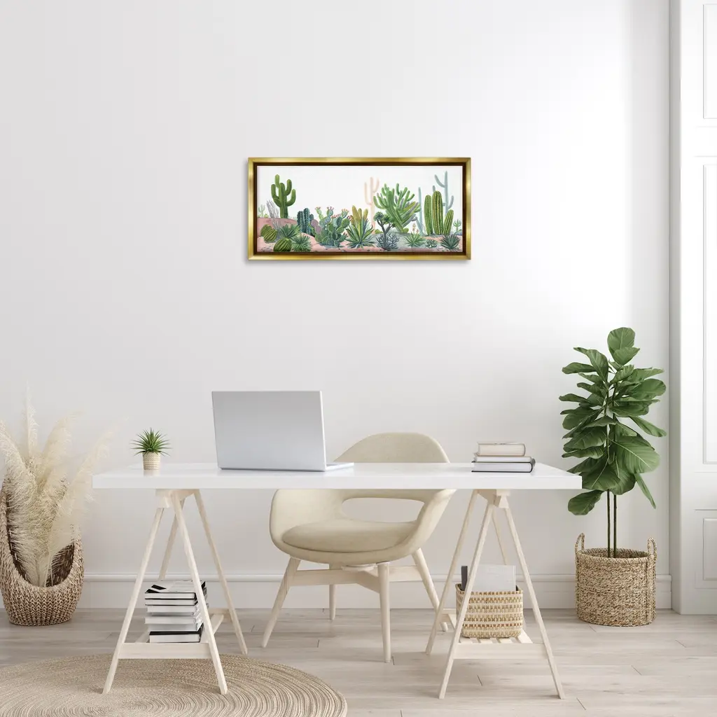 Stupell Varied Desert Vegetation Cacti Framed Floater Canvas Wall Art Design By Cherish Flieder - 31 X 14 - Gold