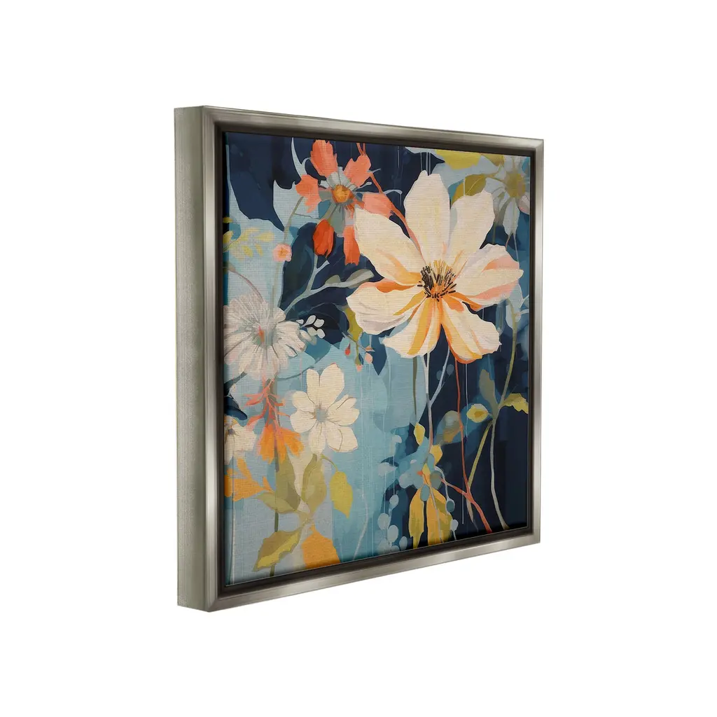 Elevate your home or office to the next level with Stupell Framed Floating Canvas Wall Art. Our premium hand-stretched canvas is mounted securely into a sturdy lightweight frame. The museum-style gap between the wrapped canvas and the box frame gives the illusion of floating artwork. Stupell Wall Art is made in the USA.Features: Dimensions: 18 x 1.7 x 18 Frame, 17 x 1.5 x 17 Canvas ArtFloating Frame Canvas Products are available in sizes 18"x18" and 25"x25". All Floating Frame Canvas Products have a 1.7" Depth.Wall Art is Ready to Hang with Hardware Free Hanging. No Installation required. For Easy Set Up Lean or Layer Artwork on Shelf or Against Wall. Artwork is Permently Fixed into the Frame.Our elevated 1.7" Thick Floating Frame is the perfect complement to our canvas style Wall Art. We use only the highest quality inks in house with industry leading printing solutions. Canvas is hand stretched over a durable wood foundation and then mounted securly into a Modern Box Frame. Made in the USA.Artwork Relates To: Floral, Pattern, Flower, Petal, Plant, Blossom, Bloom, Modern, AbstractDesign by Lazar Studio