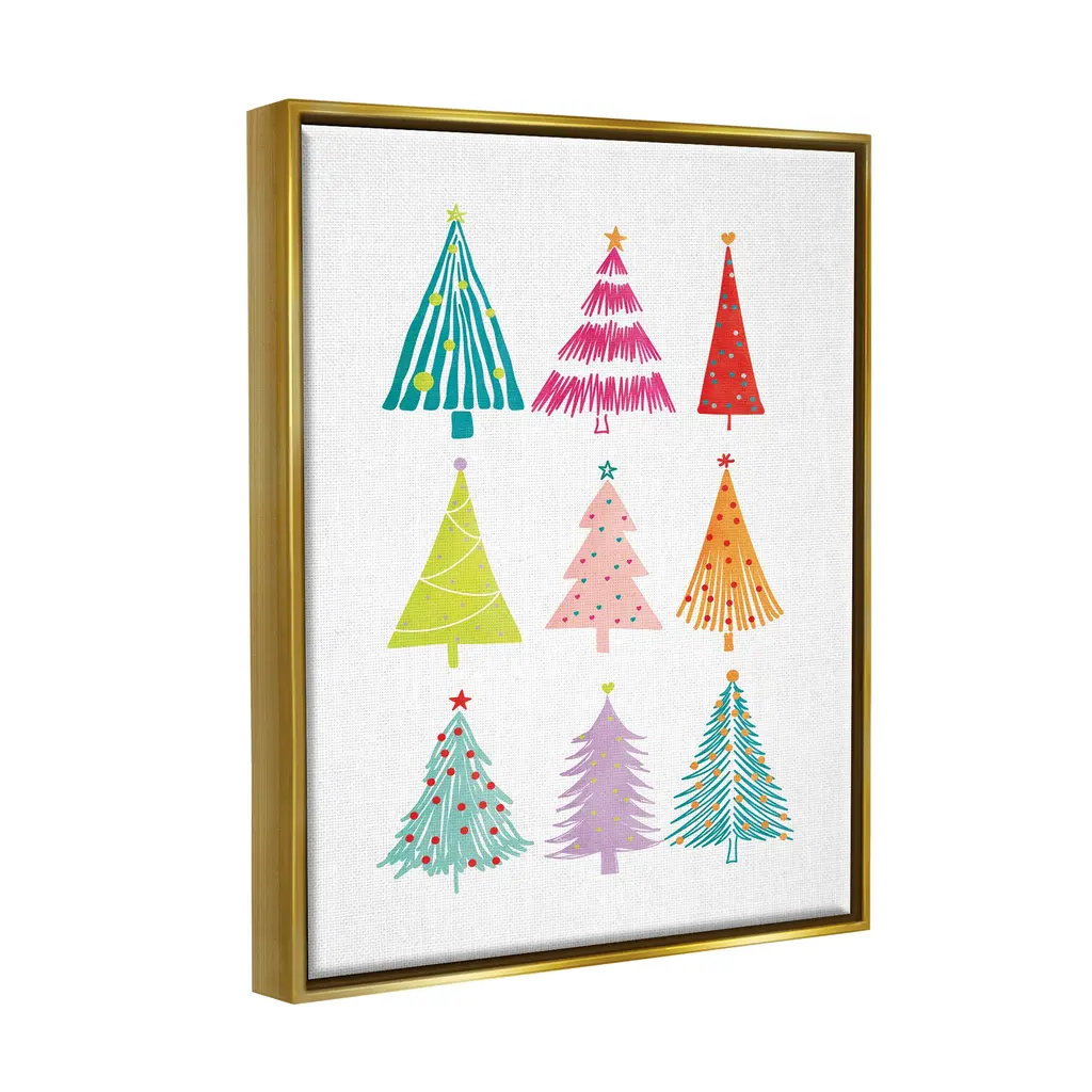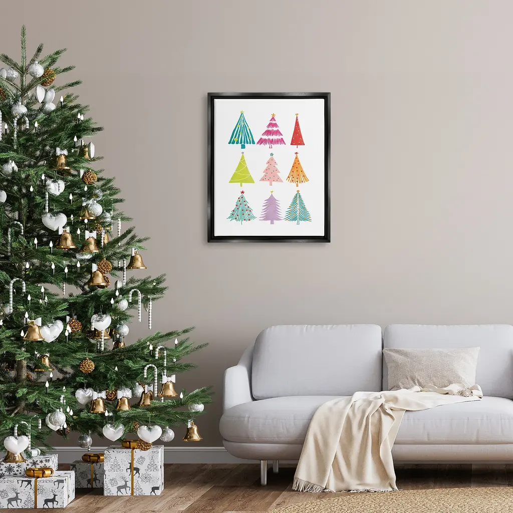 Stupell Varied Fun Christmas Trees Framed Floater Canvas Wall Art By Jj Design House Llc - 16 X 20 - Black