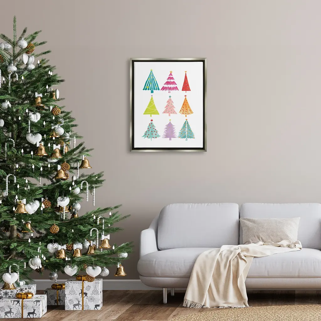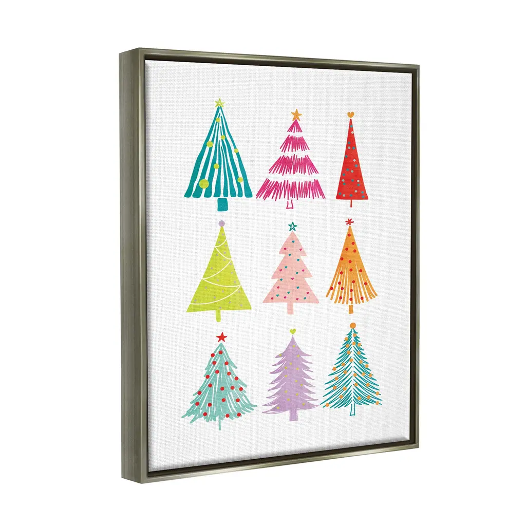 Stupell Varied Fun Christmas Trees Framed Floater Canvas Wall Art By Jj Design House Llc - 16 X 20 - Grey
