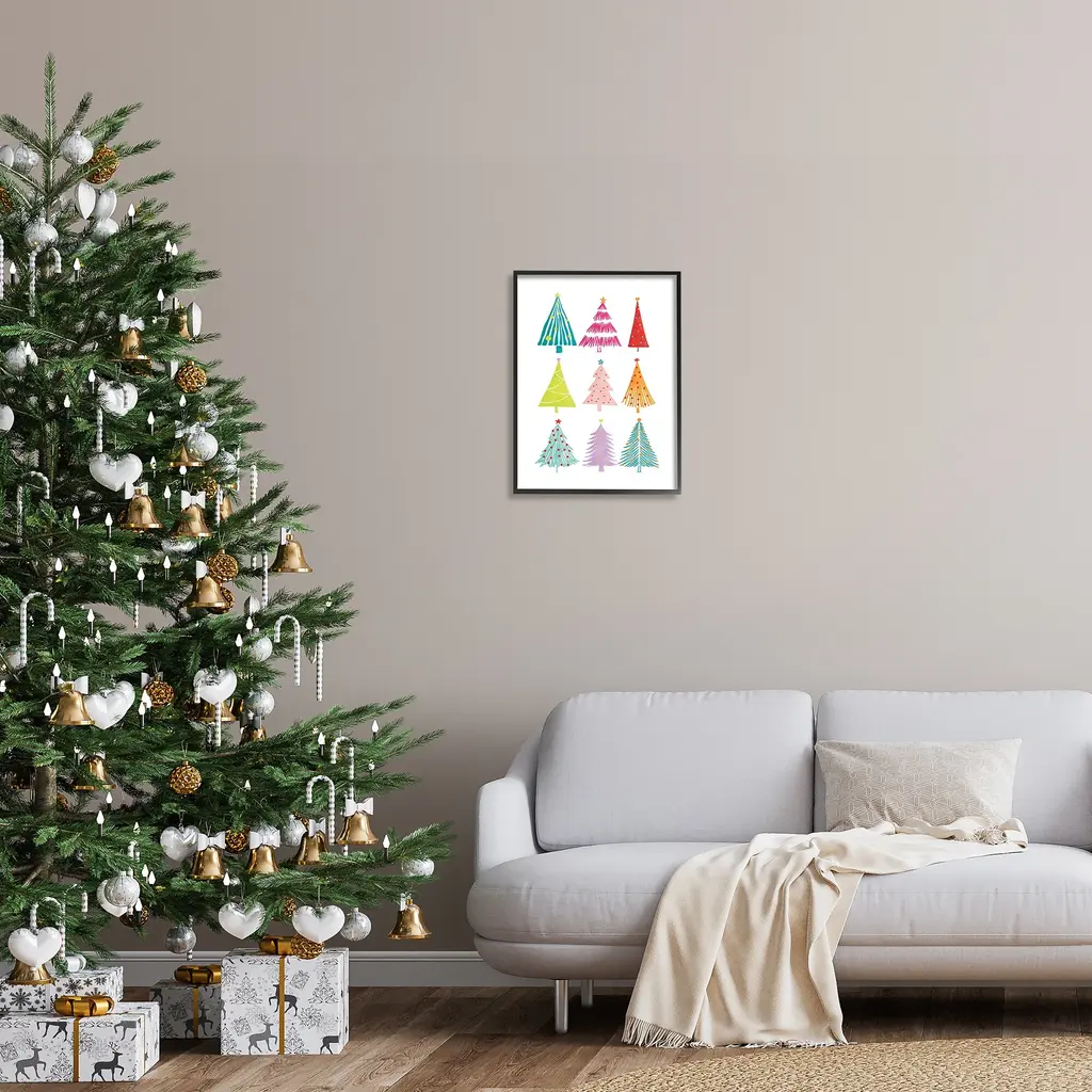 Add dimension to any room with our textured Framed Giclee Artwork. Our framed artwork is securely mounted into a 1.5-inch thick wood grain frame and ready to hang. Frames are available in three alluring styles: black, gray farmhouse and white. In addition, you should check out our oversized options if you want a statement piece. Stupell Wall Art is made in the USA.Features: Dimensions: 11 x 1.5 x 14 FramedFramed Giclee Sizes Include Standard: 11 x 1.5 x 14 Large: 16 x 1.5 x 20 Oversized: 24 x 1.5 x 30Wall Art is Ready to Hang - No Installation or Hardware Needed. For Easy Set Up Lean or Layer Artwork on Shelf or Against Wall.Our giclée prints are carefully mounted on a durable MDF backing, and then perfectly finished in a 1.5 inch thick woodgrain frame. Mounted frame colors include black, gray farmhouse and white. Made In USA.Artwork Relates To: Christmas, Christmas Decorations, Festival, Christmas Tree, HolidayDesign by JJ Design House LLC