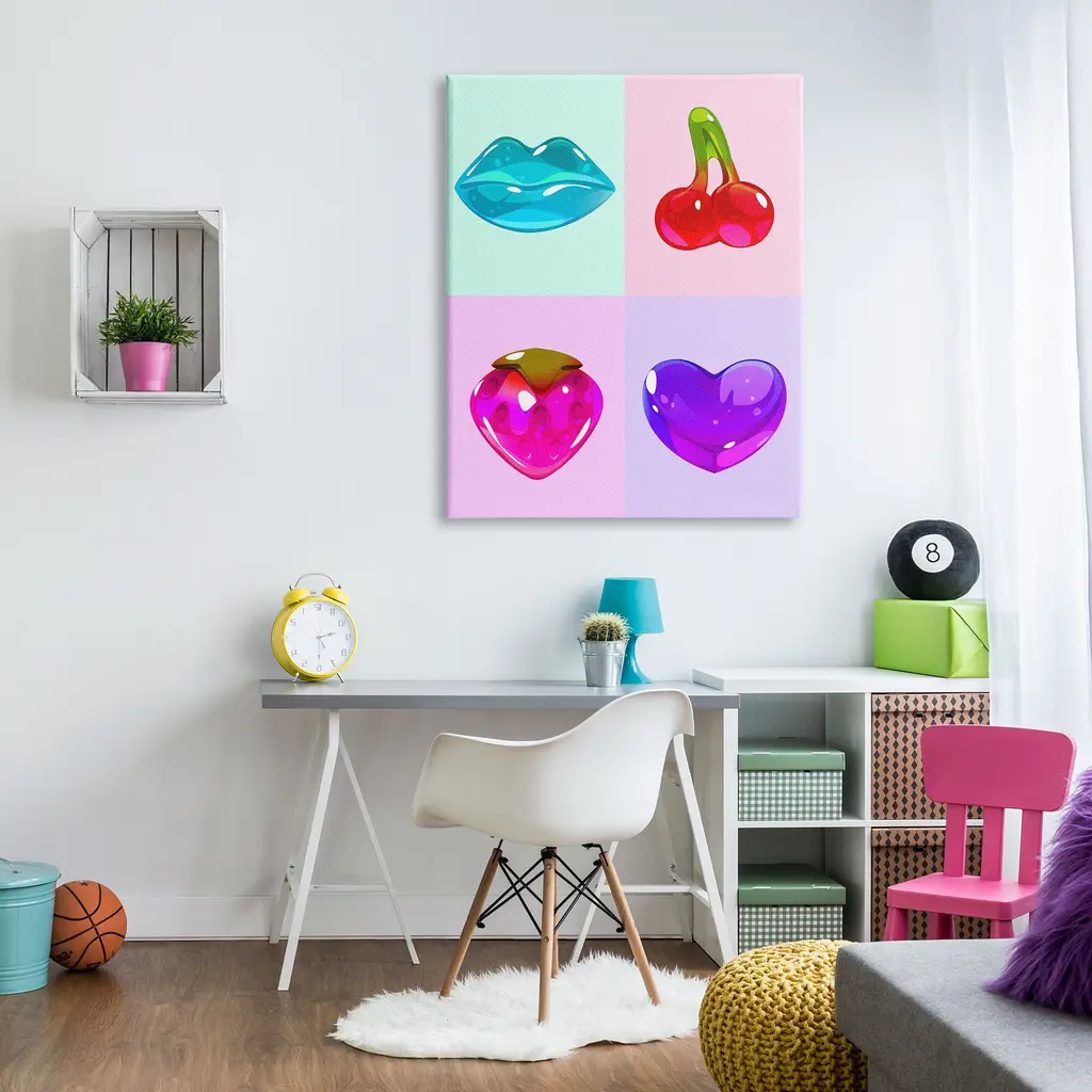 We create our stretched canvas to the highest standards. Using only the highest quality inks and canvas on Mimaki printers, we hand-cut and stretch each piece over a 1.5-inch thick wooden frame for hanging. As a result, the art comes ready to hang on the sturdy ledge with no installation required. Stupell Wall Art is made in the USA.Features: Dimensions: 16 x 1.5 x 20 InchesStretched Canvas Sizes Include Standard: 16 x 1.5 x 20 Large: 20 x 1.5 x 30 X-Large: 30 x 1.5 x 40 Oversized: 36 x 1.5 x 48Wall Art is Ready to Hang with Hardware Free Hanging. No installation required. For Easy Set Up Lean or Layer Artwork on Shelf or Against Wall.Our stretched canvas is created with the highest standards. We use only the highest quality inks and canvas on our in house Mimaki printers, and then hand cut and stretch each piece over a 1.5 inch thick wooden frame for hanging. Made In USA.Artwork Relates To: Food, Candy, Gummy, PinkDesign by Lil' Rue