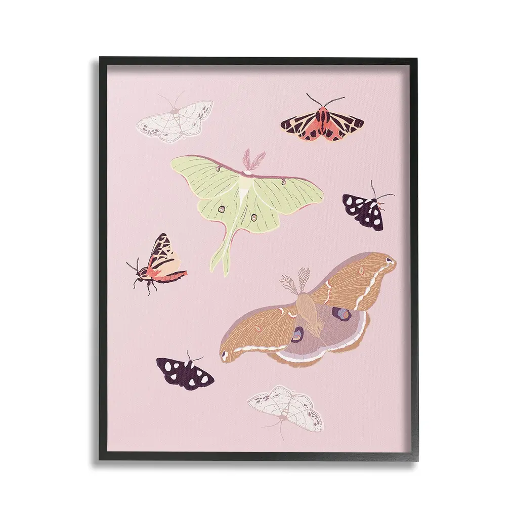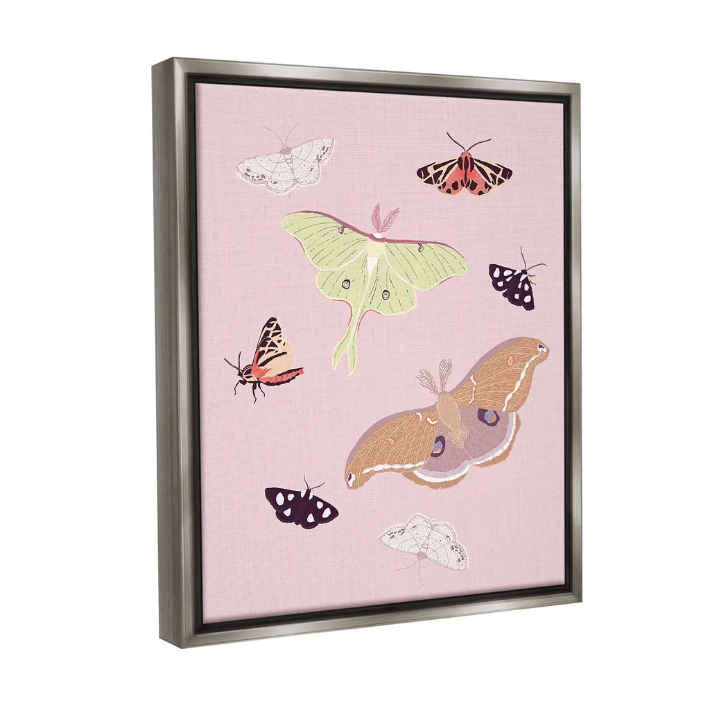 Elevate your home or office to the next level with Stupell Framed Floating Canvas Wall Art. Our premium hand-stretched canvas is mounted securely into a sturdy lightweight frame. The museum-style gap between the wrapped canvas and the box frame gives the illusion of floating artwork. Stupell Wall Art is made in the USA.Features: Dimensions: 17 x 1.7 x 21 Frame, 16 x 1.5 x 20 Canvas ArtFloating Frame Canvas Products are available in sizes 17"x21" and 25"x31". All Floating Frame Canvas Products have a 1.7" Depth.Wall Art is Ready to Hang with Hardware Free Hanging. No Installation required. For Easy Set Up Lean or Layer Artwork on Shelf or Against Wall. Artwork is Permently Fixed into the Frame.Our elevated 1.7" Thick Floating Frame is the perfect complement to our canvas style Wall Art. We use only the highest quality inks in house with industry leading printing solutions. Canvas is hand stretched over a durable wood foundation and then mounted securly into a Modern Box Frame. Made in the USA.Artwork Relates To: Animal, Butterfly, Insect, Invertebrate, Moth, Bug, Pattern, Pink, Pastel, NatureDesign by Sweet Melody Designs