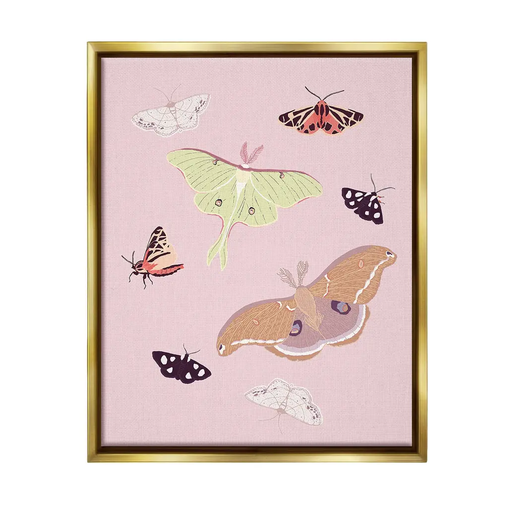 Elevate your home or office to the next level with Stupell Framed Floating Canvas Wall Art. Our premium hand-stretched canvas is mounted securely into a sturdy lightweight frame. The museum-style gap between the wrapped canvas and the box frame gives the illusion of floating artwork. Stupell Wall Art is made in the USA.Features: Dimensions: 17 x 1.7 x 21 Frame, 16 x 1.5 x 20 Canvas ArtFloating Frame Canvas Products are available in sizes 17"x21" and 25"x31". All Floating Frame Canvas Products have a 1.7" Depth.Wall Art is Ready to Hang with Hardware Free Hanging. No Installation required. For Easy Set Up Lean or Layer Artwork on Shelf or Against Wall. Artwork is Permently Fixed into the Frame.Our elevated 1.7" Thick Floating Frame is the perfect complement to our canvas style Wall Art. We use only the highest quality inks in house with industry leading printing solutions. Canvas is hand stretched over a durable wood foundation and then mounted securly into a Modern Box Frame. Made in the USA.Artwork Relates To: Animal, Butterfly, Insect, Invertebrate, Moth, Bug, Pattern, Pink, Pastel, NatureDesign by Sweet Melody Designs
