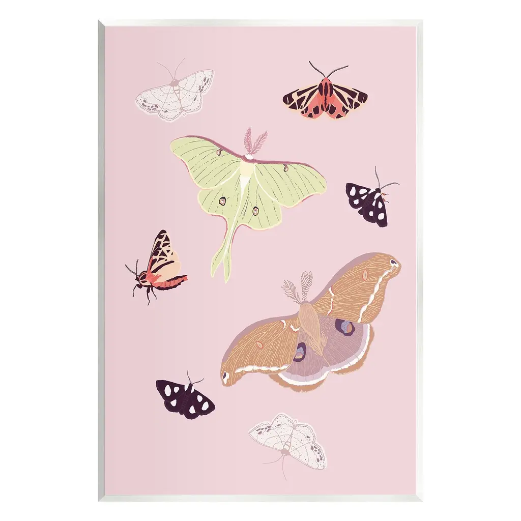 Our wall plaques start as high-quality lithograph prints mounted on durable 0.5-inch thick MDF wood. Each piece is hand finished and comes with a fresh layer of white foil on the sides to give it a crisp, clean look. Plaques arrive ready to hang without installation and come with removable plastic corners to keep them from damage in transit. Stupell Wall Art is made in the USA.Features: Dimensions: 10 x 0.5 x 15 InchesWall Plaque Product Sizes Include 10"x15" and 13"x19". All wall plaque products have a 0.5" Depth. Wall Art is Ready to Hang with Hardware Free Hanging. No installation required. For Easy Set Up Lean or Layer Artwork on Shelf or Against Wall.All of our wall plaques start off as high quality lithograph prints that are then mounted on durable 0.5 inch thick MDF wood. Each piece is hand finished and comes with a fresh layer of foil on the sides to give it a crisp clean look. Made In USA.Artwork Relates To: Animal, Butterfly, Insect, Invertebrate, Moth, Bug, Pattern, Pink, Pastel, NatureDesign by Sweet Melody Designs