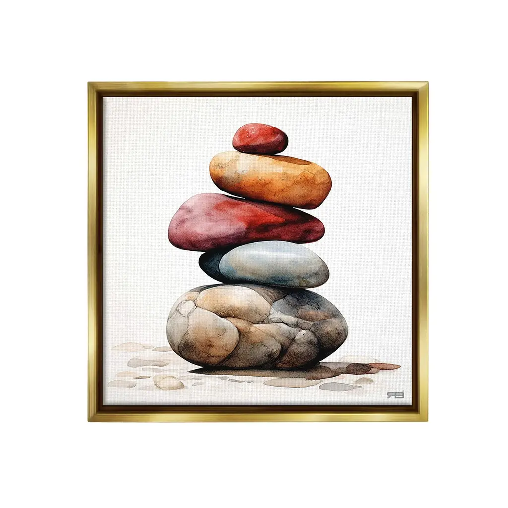Stupell Varied Stacked Rocks Framed Floater Canvas Wall Art Design By Rb - 18 X 18 - Brown
