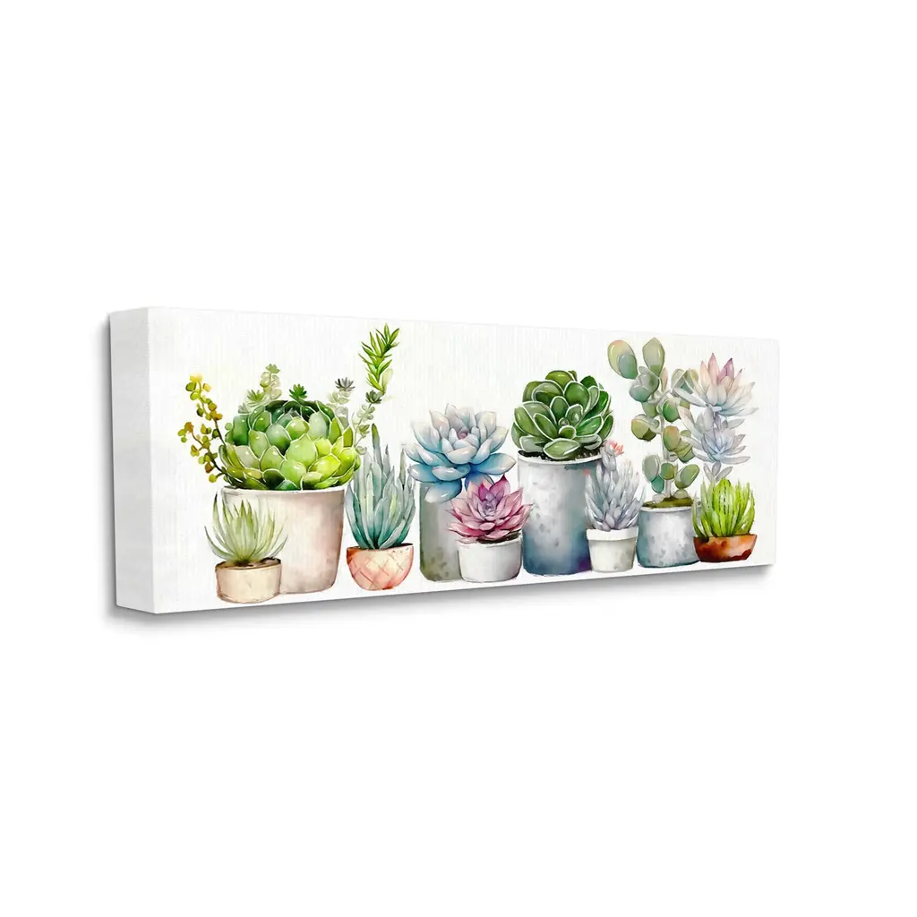 We create our stretched canvas to the highest standards. Using only the highest quality inks and canvas on Mimaki printers, we hand-cut and stretch each piece over a 1.5-inch thick wooden frame for hanging. As a result, the art comes ready to hang on the sturdy ledge with no installation required. Stupell Wall Art is made in the USA.Features: Dimensions: 24 x 1.5 x 10 InchesStretched Canvas Sizes Include Standard: 24 x 1.5 x 10 Large: 30 x 1.5 x 13 X-Large: 40 x 1.5 x 17 Oversized: 48 x 1.5 x 20Wall Art is Ready to Hang - No Installation or Hardware Needed. For Easy Set Up Lean or Layer Artwork on Shelf or Against Wall.Our stretched canvas is created with the highest standards. We use only the highest quality inks and canvas on our in house Mimaki printers, and then hand cut and stretch each piece over a 1.5 inch thick wooden frame for hanging. Made In USA.Artwork Relates To: Plant, Potted Plant, Flower, Flower Arrangement, Succulent, BotanicalDesign by Ziwei Li