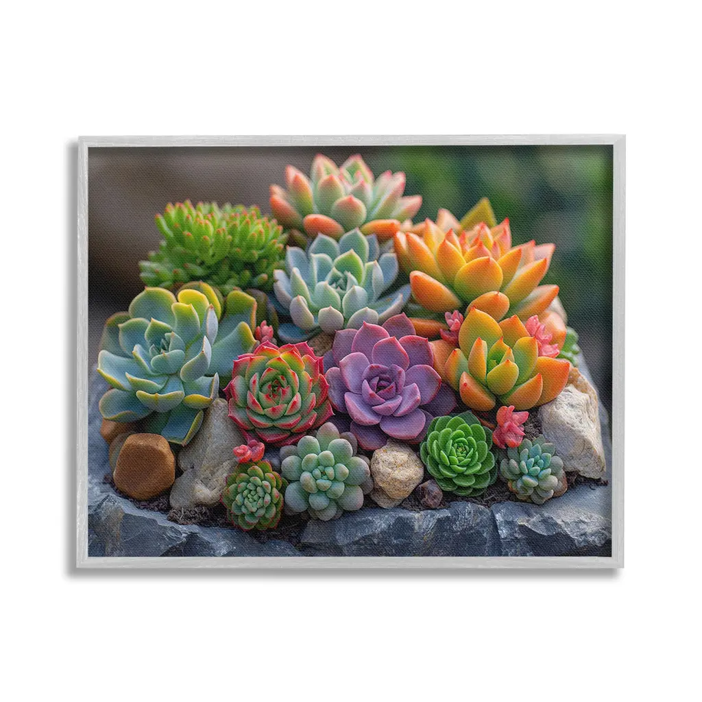 Stupell Varied Succulents Photography Framed Floater Canvas Wall Art Design By Imagine It Images - 21 X 17 - Grey