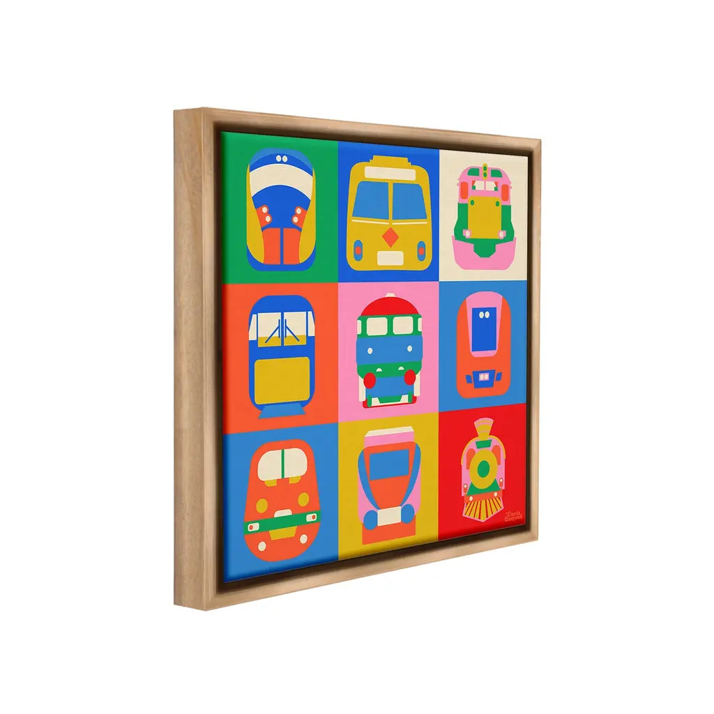 Elevate your home or office to the next level with Stupell Framed Floating Canvas Wall Art. Our premium hand-stretched canvas is mounted securely into a sturdy lightweight frame. The museum-style gap between the wrapped canvas and the box frame gives the illusion of floating artwork. Stupell Wall Art is made in the USA.Features: Dimensions: 18 x 1.7 x 18 Frame, 17 x 1.5 x 17 Canvas ArtFloating Frame Canvas Products are available in sizes 18"x18" and 25"x25". All Floating Frame Canvas Products have a 1.7" Depth.Wall Art is Ready to Hang with Hardware Free Hanging. No Installation required. For Easy Set Up Lean or Layer Artwork on Shelf or Against Wall. Artwork is Permently Fixed into the Frame.Our elevated 1.7" Thick Floating Frame is the perfect complement to our canvas style Wall Art. We use only the highest quality inks in house with industry leading printing solutions. Canvas is hand stretched over a durable wood foundation and then mounted securly into a Modern Box Frame. Made in the USA.Artwork Relates To: Transportation, Vehicle, Bus, Train, Tram, Pattern, Modern, AbstractDesign by Carrie Cantwell