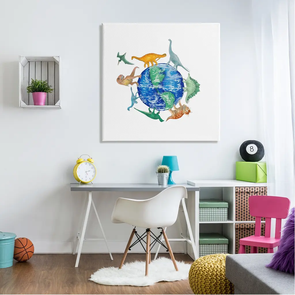 Stupell Various Dinosaurs Circling Planet Earth Globe Illustration Canvas Wall Art, Design By Dishique - 36 X 36