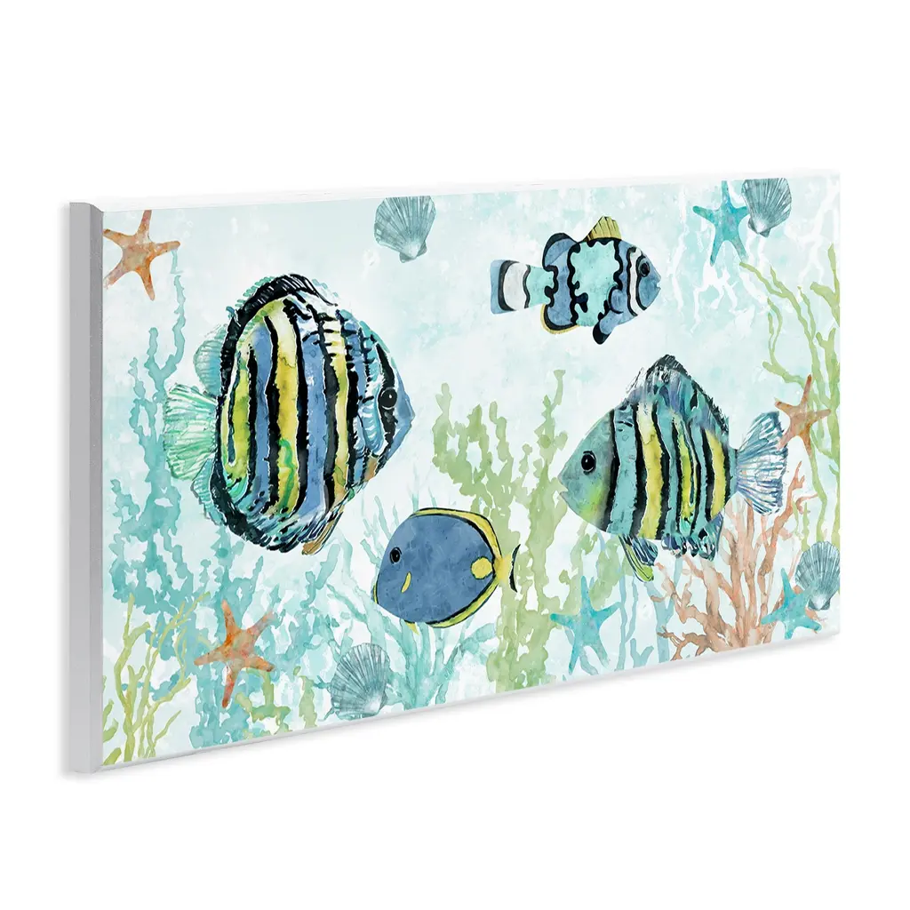 Our wall plaques start as high-quality lithograph prints mounted on durable 0.5-inch thick MDF wood. Each piece is hand finished and comes with a fresh layer of white foil on the sides to give it a crisp, clean look. Plaques arrive ready to hang without installation and come with removable plastic corners to keep them from damage in transit. Stupell Wall Art is made in the USA.Features: Dimensions: 17 x 0.5 x 7 InchesWall Art is Ready to Hang with Hardware Free Hanging. No installation required. For Easy Set Up Lean or Layer Artwork on Shelf or Against Wall.All of our wall plaques start off as high quality lithograph prints that are then mounted on durable 0.5 inch thick MDF wood. Each piece is hand finished and comes with a fresh layer of foil on the sides to give it a crisp clean look. Made In USA.Artwork Relates To: Aquatic, Ocean, Sea Life, Fish, Coral, StarfishDesign by Carol Robinson