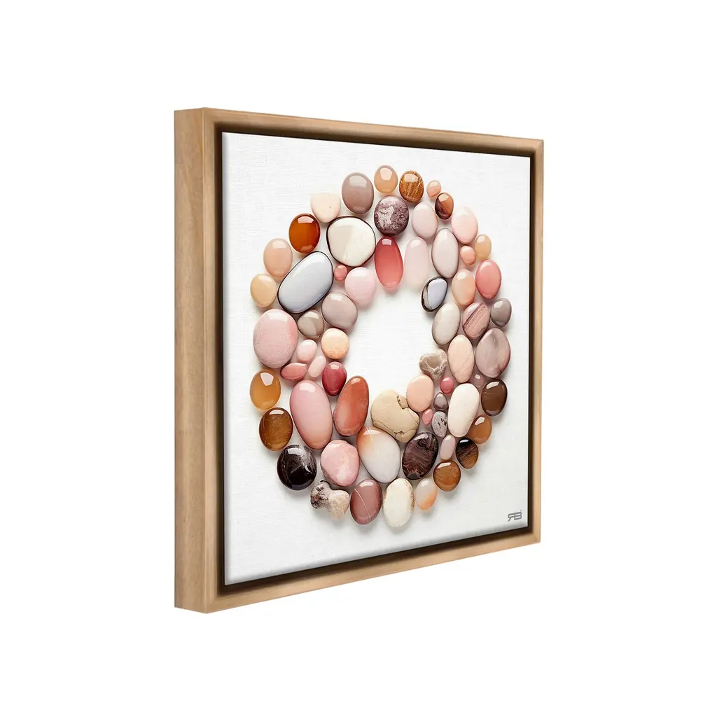 Stupell Various Pebbles In Circle Framed Floater Canvas Wall Art Design By Rb - 18 X 18 - Brown