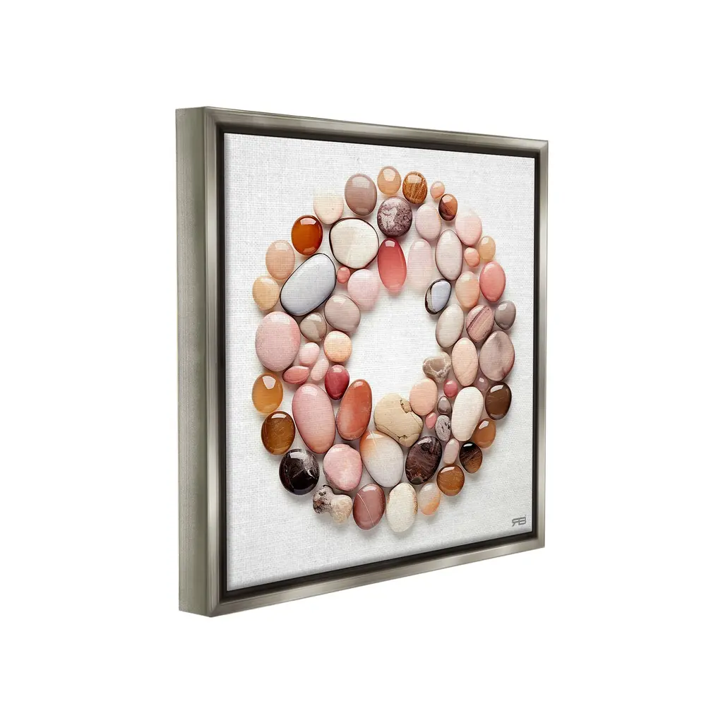 Stupell Various Pebbles In Circle Framed Floater Canvas Wall Art Design By Rb - 18 X 18 - Grey