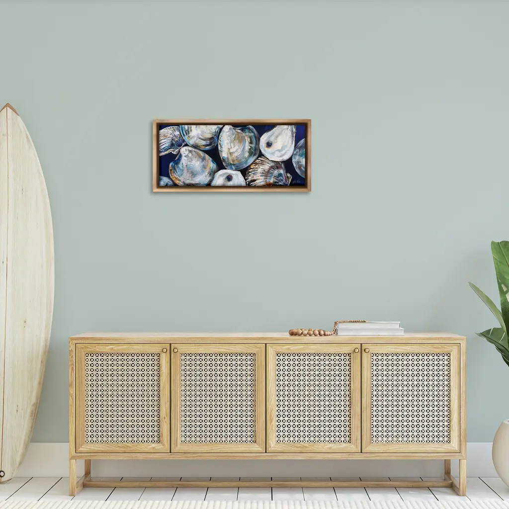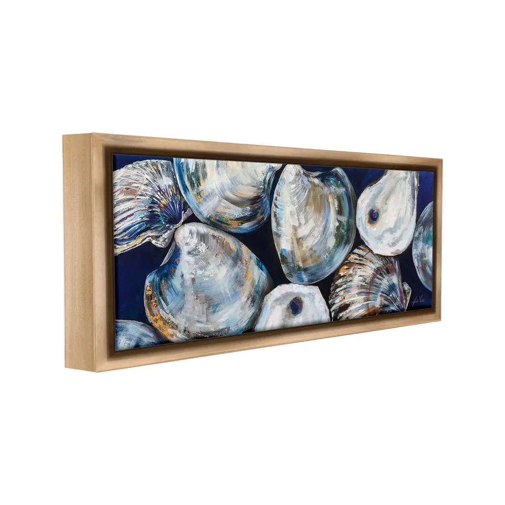 Elevate your home or office to the next level with Stupell Framed Floating Canvas Wall Art. Our premium hand-stretched canvas is mounted securely into a sturdy lightweight frame. The museum-style gap between the wrapped canvas and the box frame gives the illusion of floating artwork. Stupell Wall Art is made in the USA.Features: Dimensions: 25 x 1.7 x 11 Frame, 24 x 1.5 x 10 Canvas ArtFloating Frame Canvas Products are available in sizes 25"x11" and 31"x14". All Floating Frame Canvas Products have a 1.7" Depth.Wall Art is Ready to Hang with Hardware Free Hanging. No Installation required. For Easy Set Up Lean or Layer Artwork on Shelf or Against Wall. Artwork is Permently Fixed into the Frame.Our elevated 1.7" Thick Floating Frame is the perfect complement to our canvas style Wall Art. We use only the highest quality inks in house with industry leading printing solutions. Canvas is hand stretched over a durable wood foundation and then mounted securly into a Modern Box Frame. Made in the USA.Artwork Relates To: Animal, Clam, Food, Invertebrate, Sea Life, Seafood, Seashell, Nautical, OysterDesign by Jeanette Vertentes