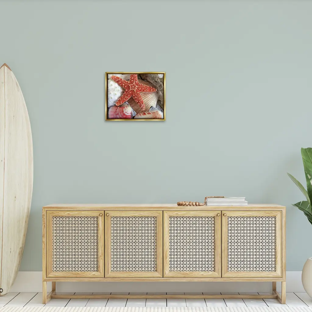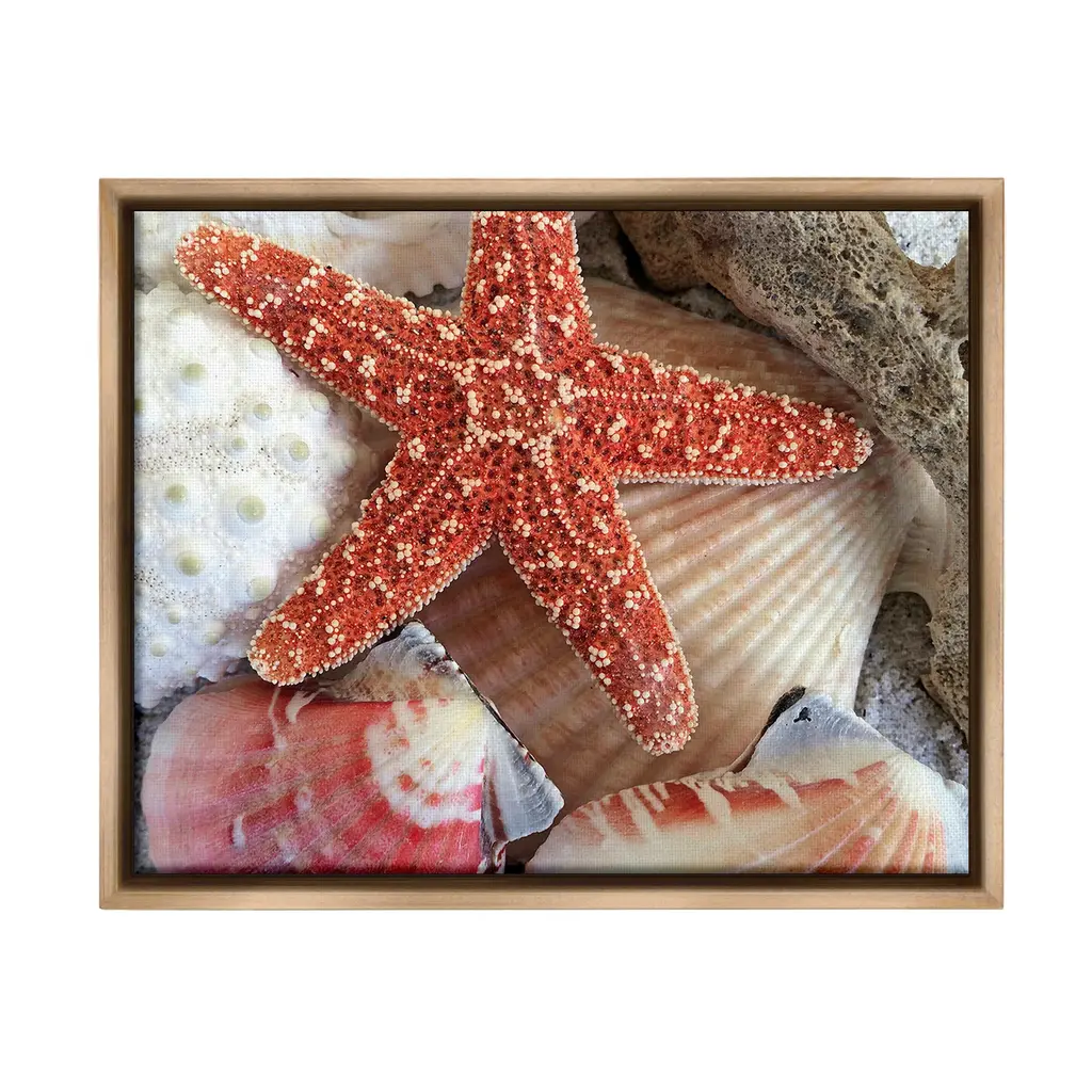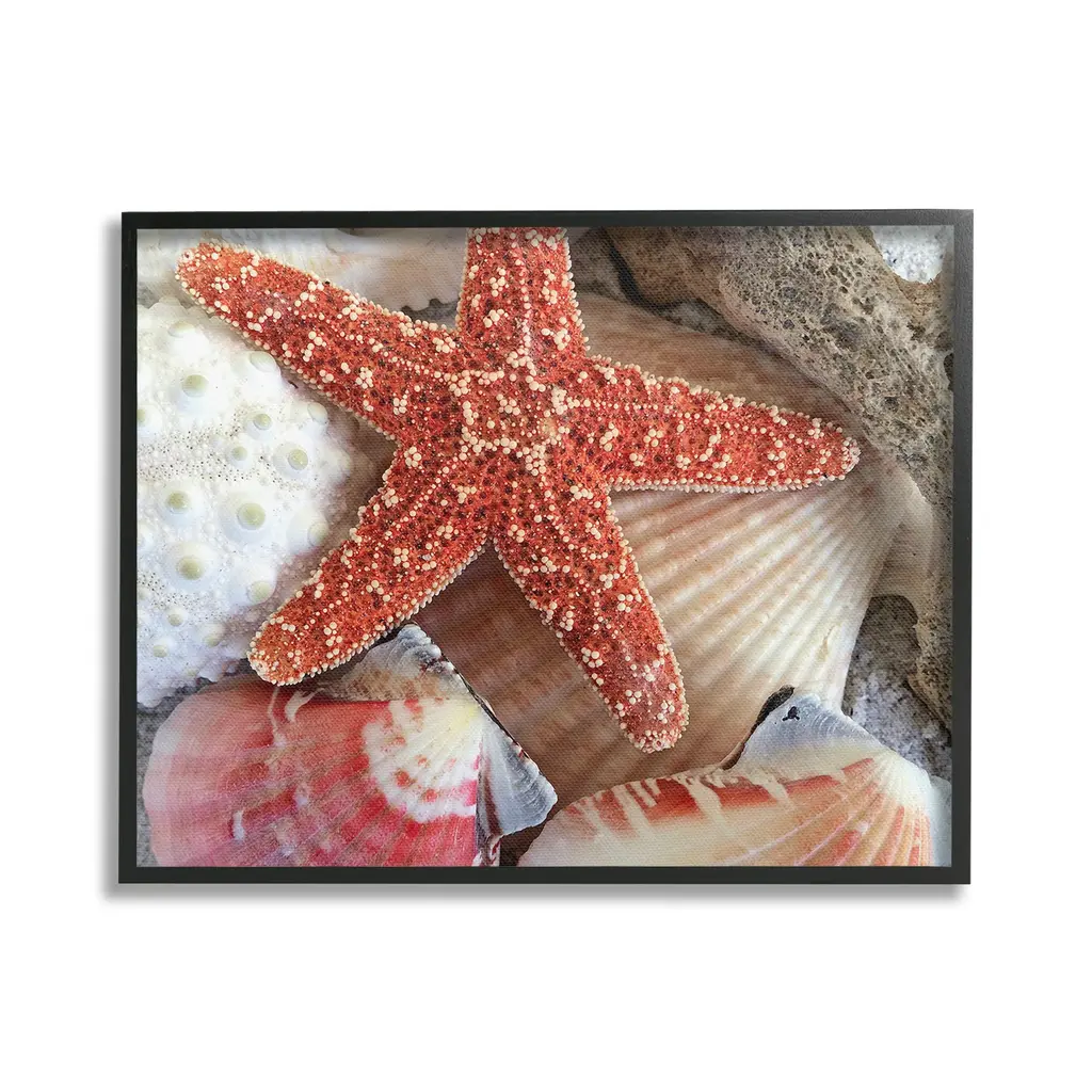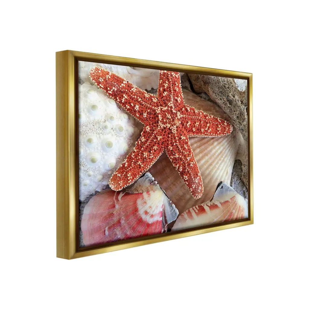 Elevate your home or office to the next level with Stupell Framed Floating Canvas Wall Art. Our premium hand-stretched canvas is mounted securely into a sturdy lightweight frame. The museum-style gap between the wrapped canvas and the box frame gives the illusion of floating artwork. Stupell Wall Art is made in the USA.Features: Dimensions: 21 x 1.7 x 17 Frame, 20 x 1.5 x 16 Canvas ArtFloating Frame Canvas Products are available in sizes 21"x17" and 31"x25". All Floating Frame Canvas Products have a 1.7" Depth.Wall Art is Ready to Hang with Hardware Free Hanging. No Installation required. For Easy Set Up Lean or Layer Artwork on Shelf or Against Wall. Artwork is Permently Fixed into the Frame.Our elevated 1.7" Thick Floating Frame is the perfect complement to our canvas style Wall Art. We use only the highest quality inks in house with industry leading printing solutions. Canvas is hand stretched over a durable wood foundation and then mounted securly into a Modern Box Frame. Made in the USA.Artwork Relates To: Animal, Sea Life, Invertebrate, Starfish, Seashell, Photography, Urchin, Beach, NauticalDesign by GraffiTee Studios