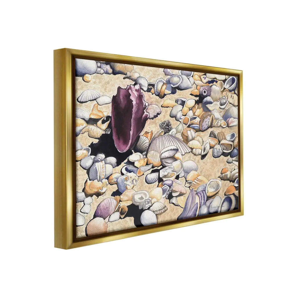 Elevate your home or office to the next level with Stupell Framed Floating Canvas Wall Art. Our premium hand-stretched canvas is mounted securely into a sturdy lightweight frame. The museum-style gap between the wrapped canvas and the box frame gives the illusion of floating artwork. Stupell Wall Art is made in the USA.Features: Dimensions: 21 x 1.7 x 17 Frame, 20 x 1.5 x 16 Canvas ArtFloating Frame Canvas Products are available in sizes 21"x17" and 31"x25". All Floating Frame Canvas Products have a 1.7" Depth.Wall Art is Ready to Hang with Hardware Free Hanging. No Installation required. For Easy Set Up Lean or Layer Artwork on Shelf or Against Wall. Artwork is Permently Fixed into the Frame.Our elevated 1.7" Thick Floating Frame is the perfect complement to our canvas style Wall Art. We use only the highest quality inks in house with industry leading printing solutions. Canvas is hand stretched over a durable wood foundation and then mounted securly into a Modern Box Frame. Made in the USA.Artwork Relates To: Animal, Seashell, Shell, Nautical, Beach, Shore, CoastDesign by Christine Reichow